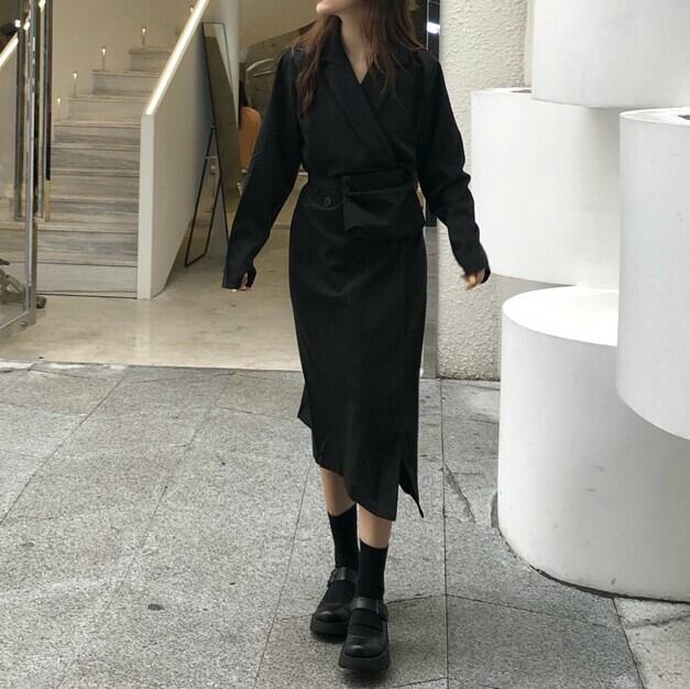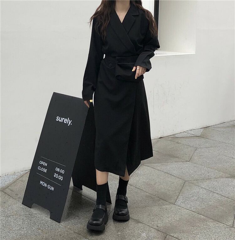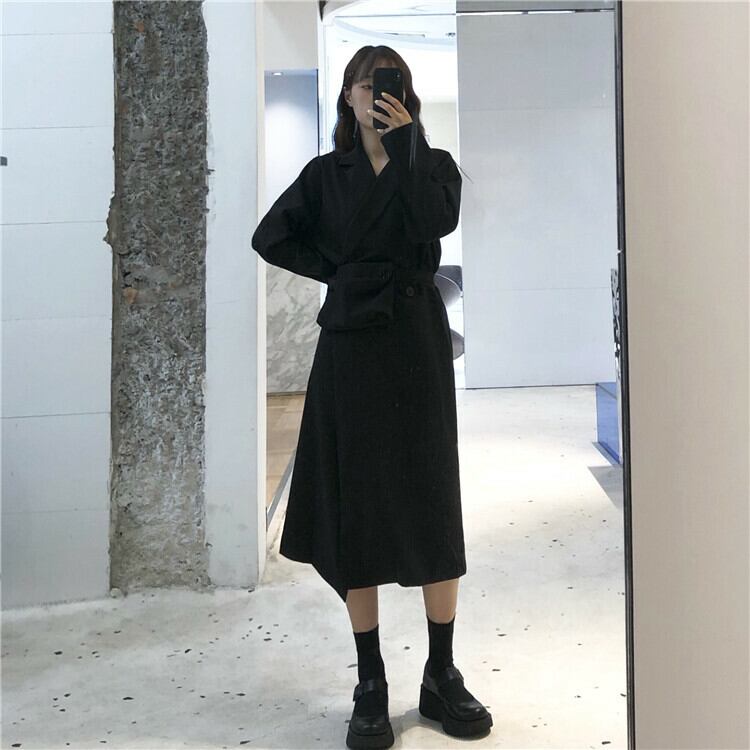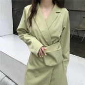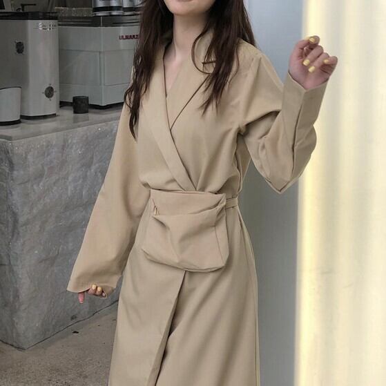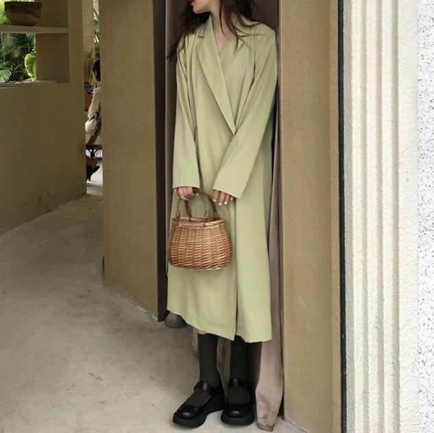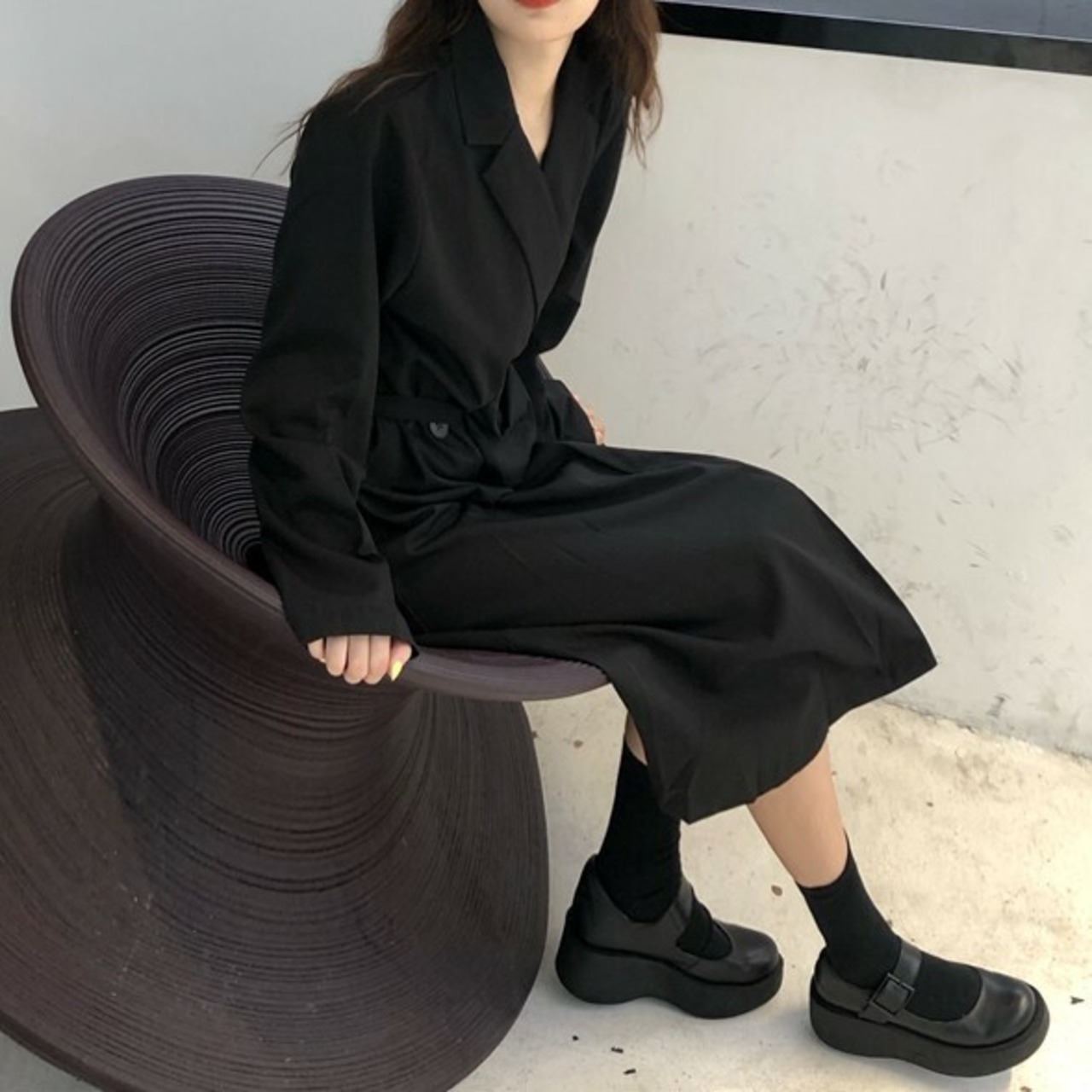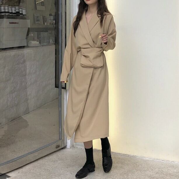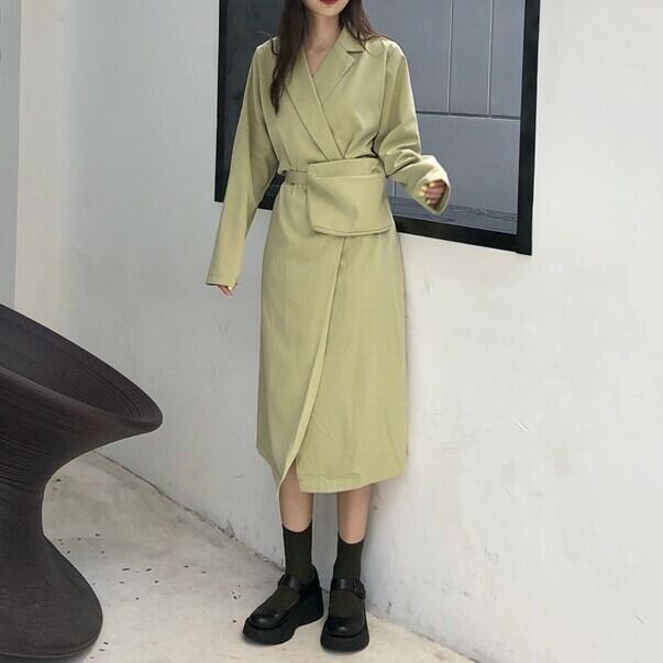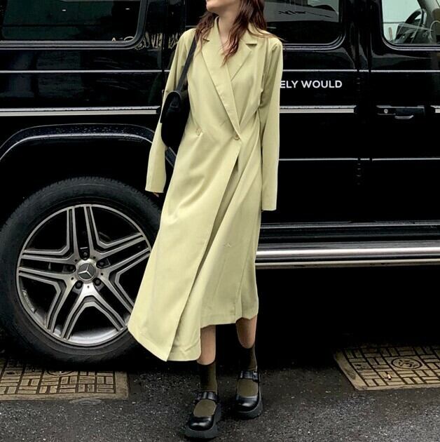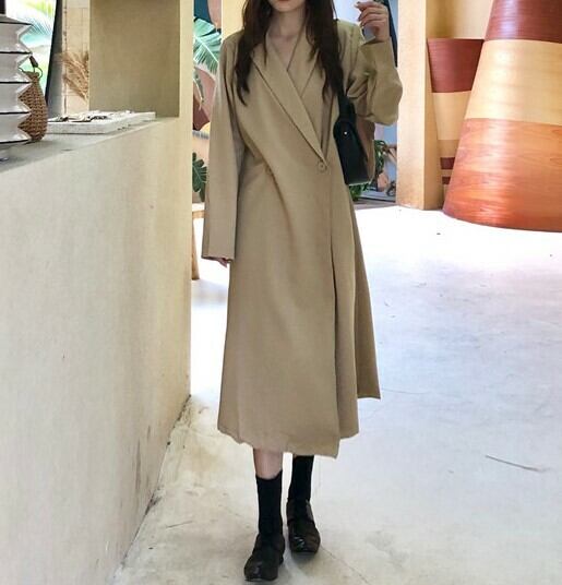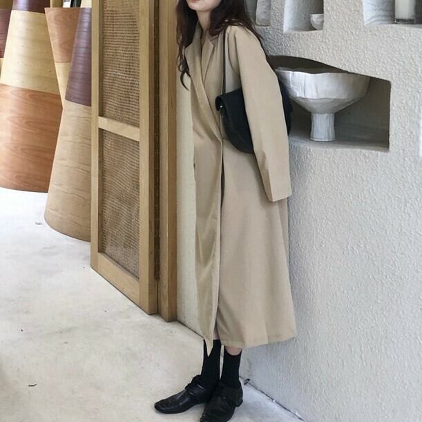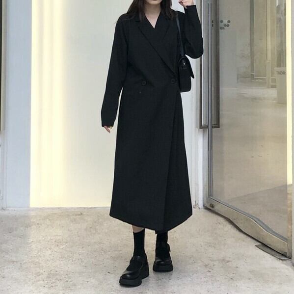 全3色 ロングコート テーラード ワンピース ゆったり 着痩せ 大人可愛い カジュアル きれいめ 無地 ブラック グリーン ブラウン 秋冬