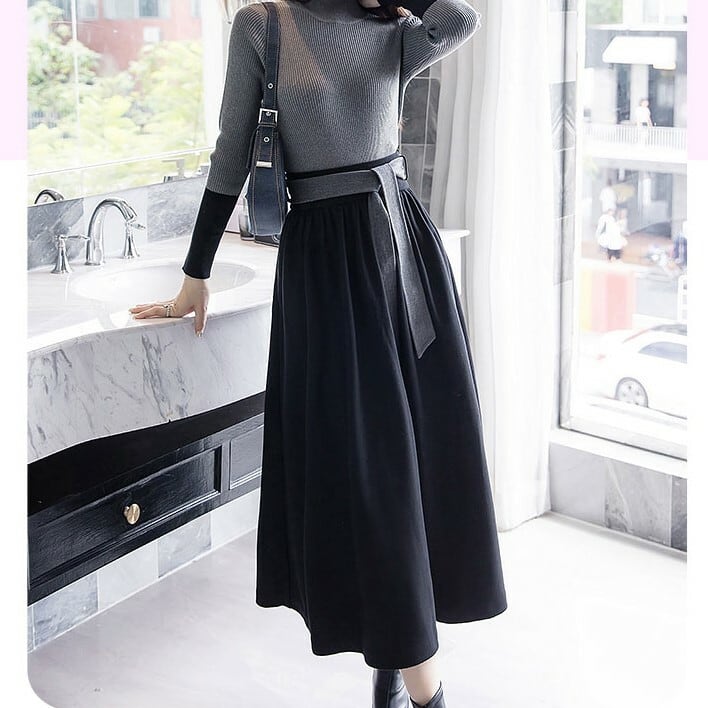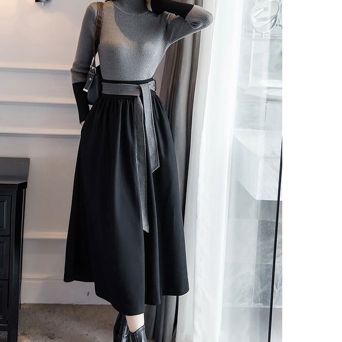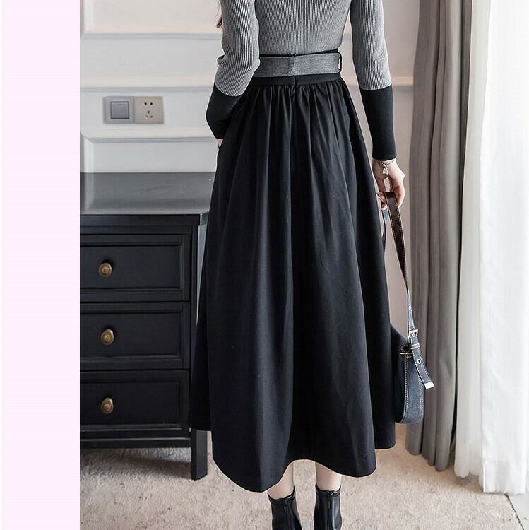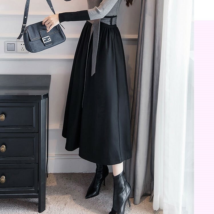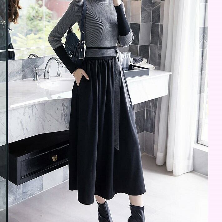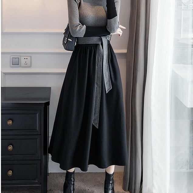 フレアスカート マキシ丈 ロング ハイウェスト きれいめ シンプル デート お呼ばれ お出かけ オフィス 通勤 ブラック 秋冬