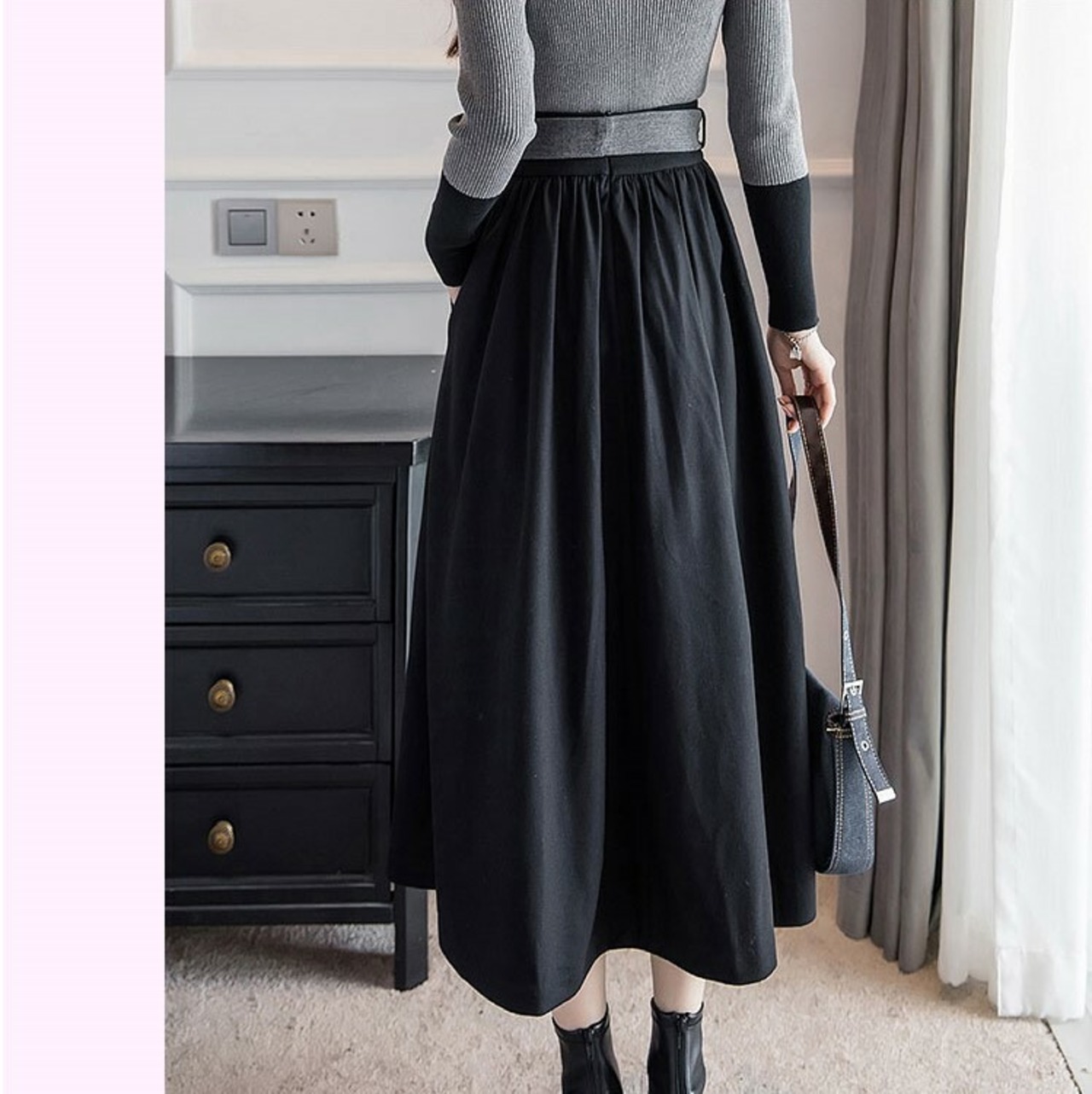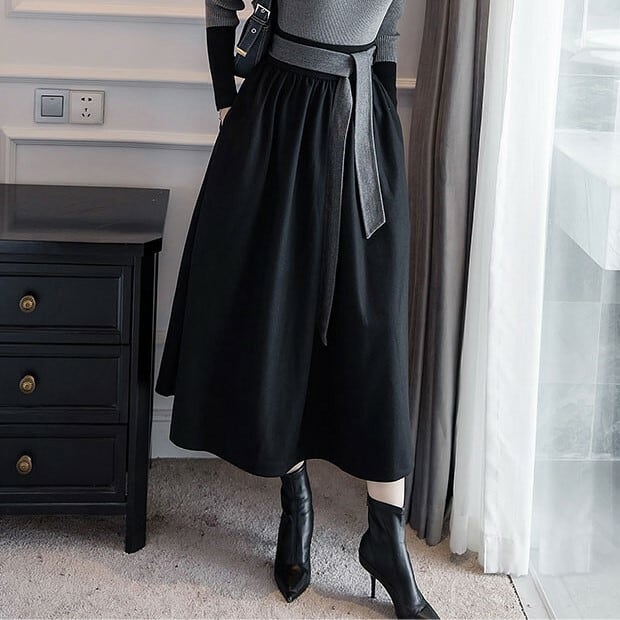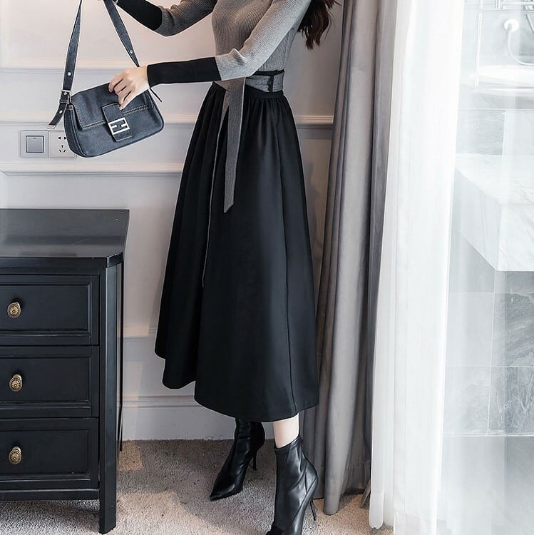 エレガントなフレアシルエットのミモレ丈スカート。
