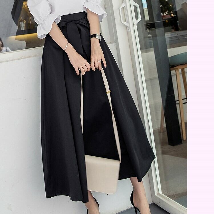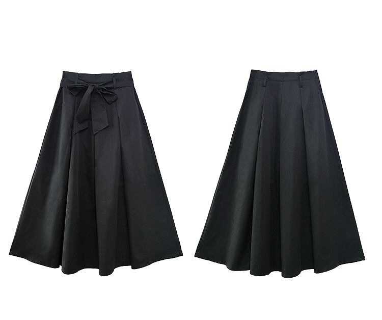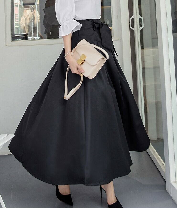 ロングスカート マキシ丈 ハイウェスト Aライン ウエストリボン きれいめ シンプル デート お呼ばれ お出かけ オフィス 通勤 無地 ブラック 秋冬