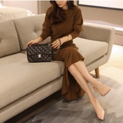 フィッシュテールが女性らしいシルエットのニットワンピース。