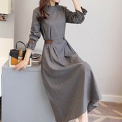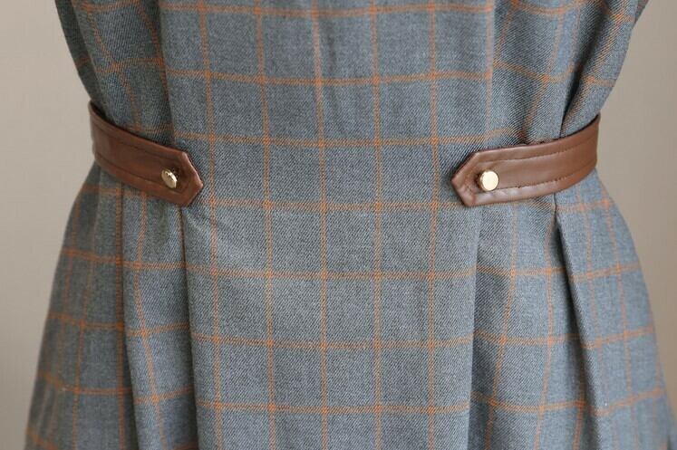 落ち着いたグレンチェックが上品なミモレ丈ワンピースです。