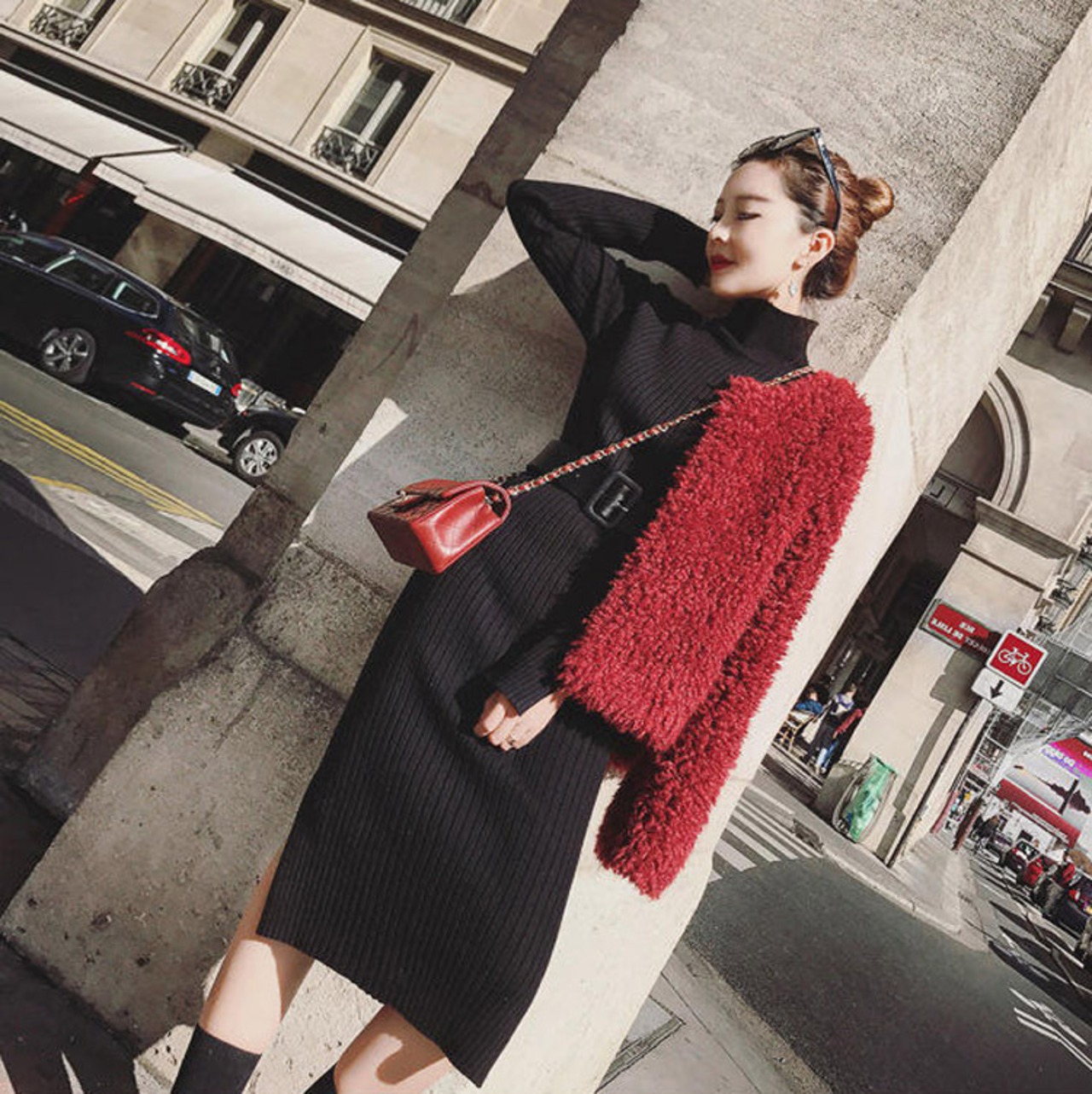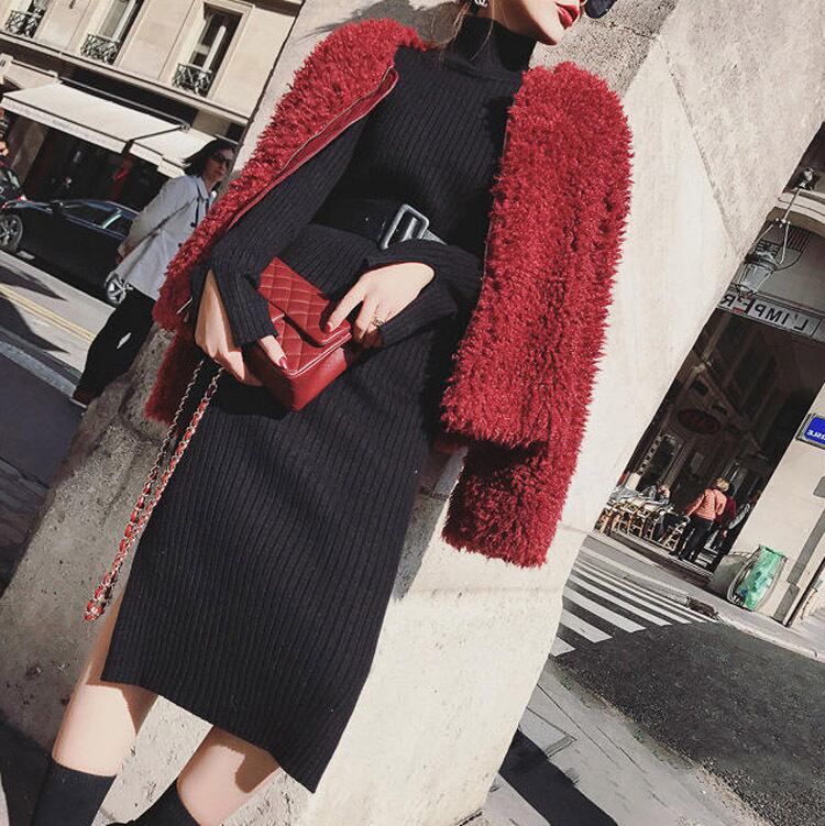 ボディラインにフィットするリブニットワンピース♪
