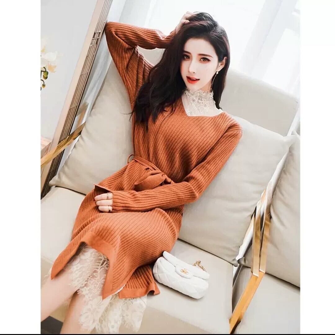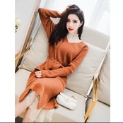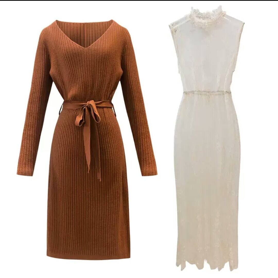 全2色 ロング丈 ワンピース セットアップ インナー フリーサイズ お出かけ お買い物 デート 秋冬 女子会 大人キレイめ エレガント カジュアル シンプル 無地