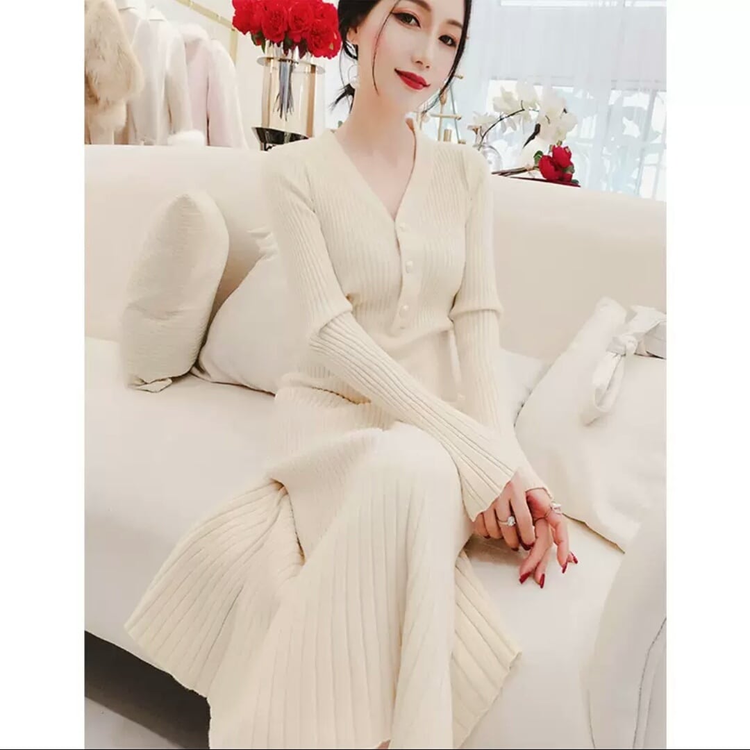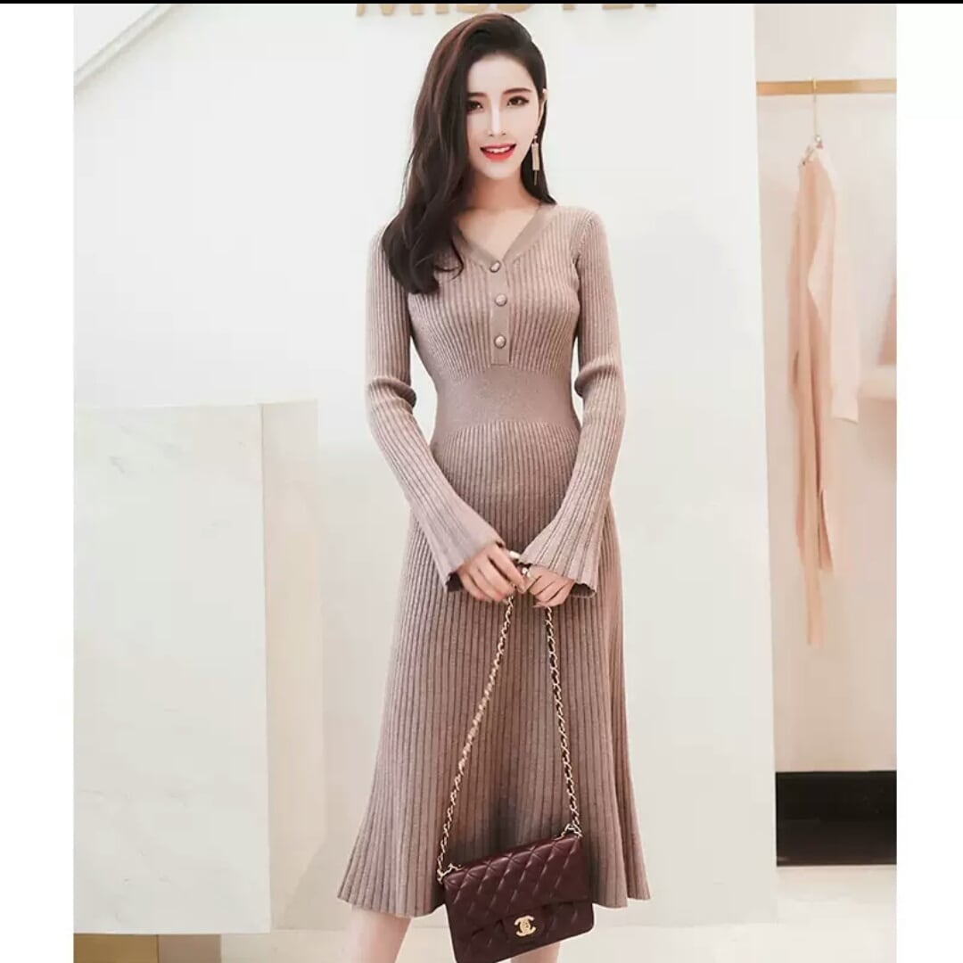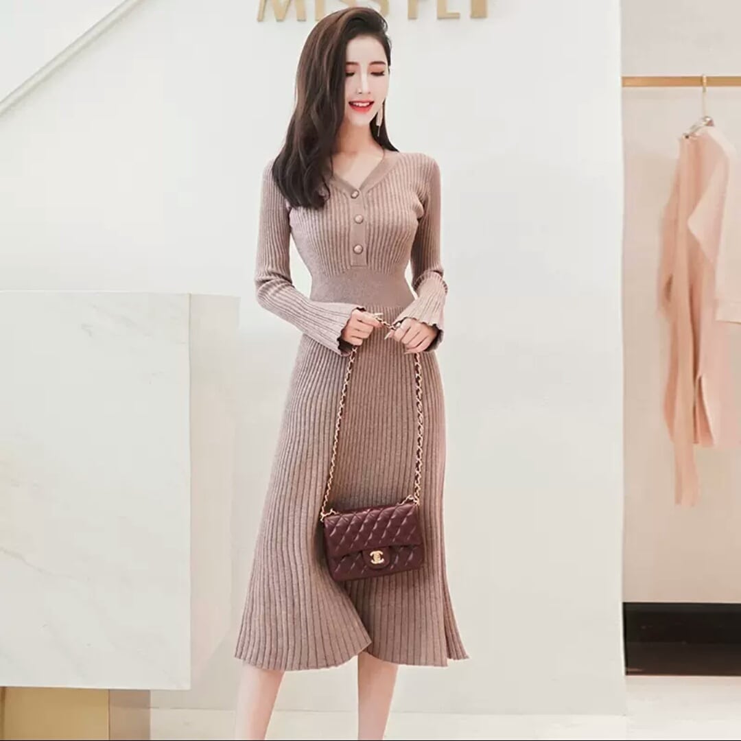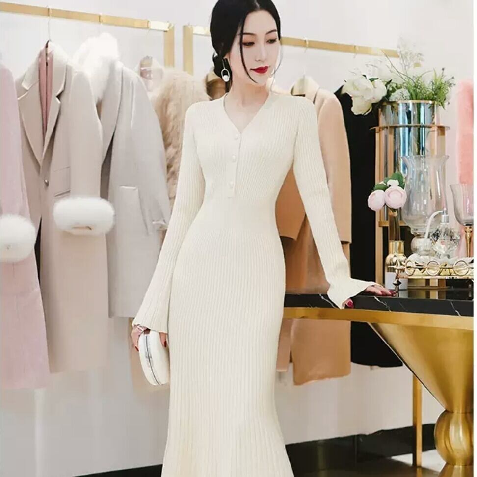 全2色 ロング丈 ニット ワンピース 長め タイト スリム 大人 キレイめ エレガント カジュアル お出かけ お買い物 デート 女子会 通学 通勤 秋冬 春 オフィス