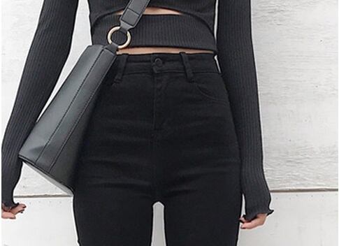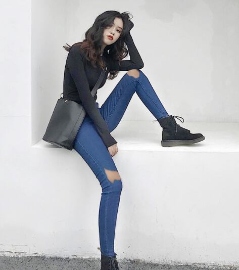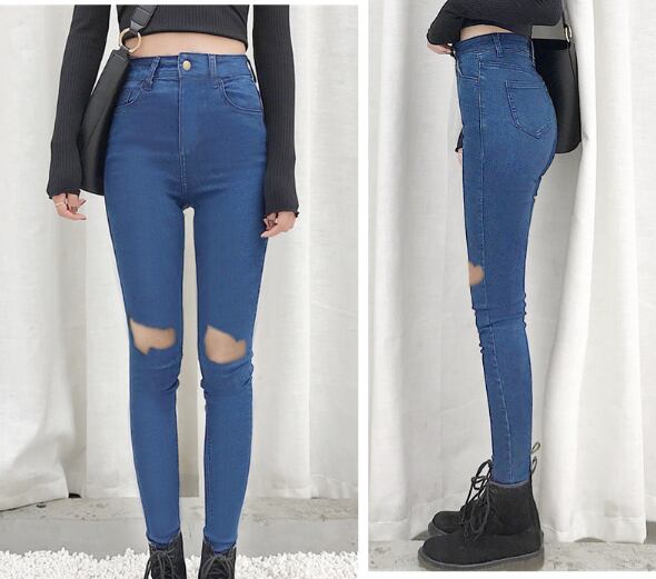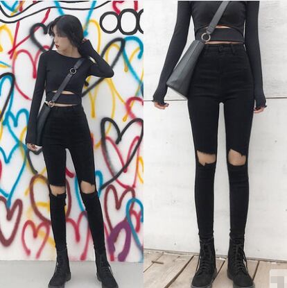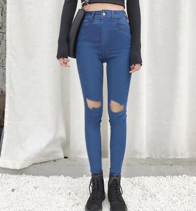 全2色 デニムパンツ スキニーパンツ パンツ ストレッチ スリム フィット ダメージ カジュアル おしゃれ トレンド クール ハイウエスト 秋 オールシーズン