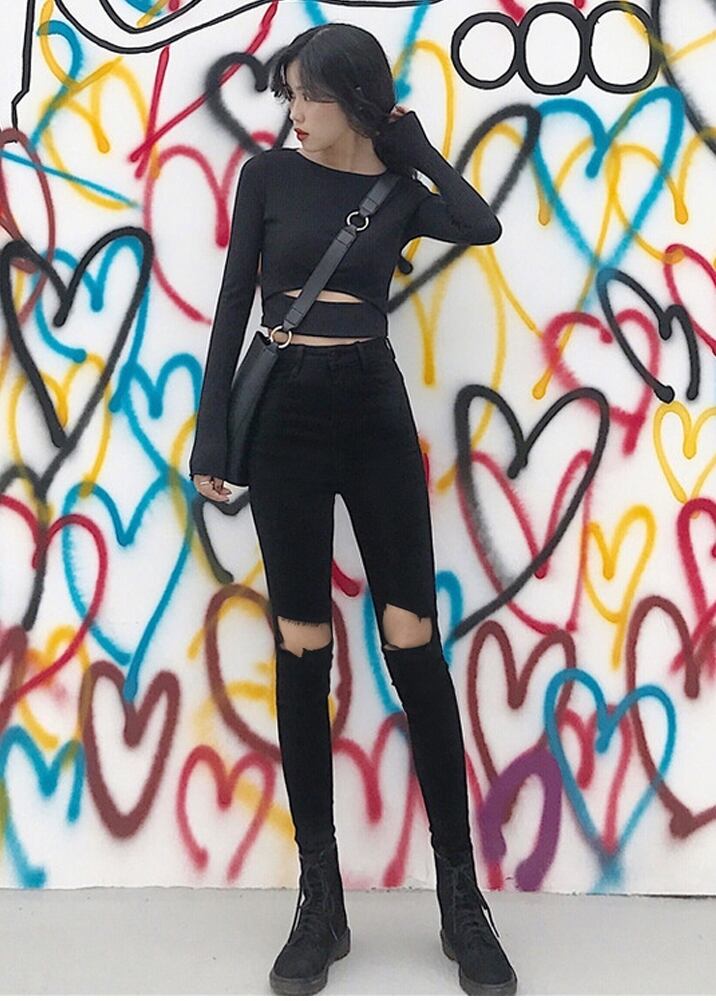トレンドのダメージ加工がクールなスキニーパンツ。