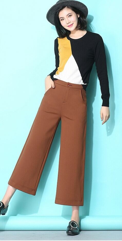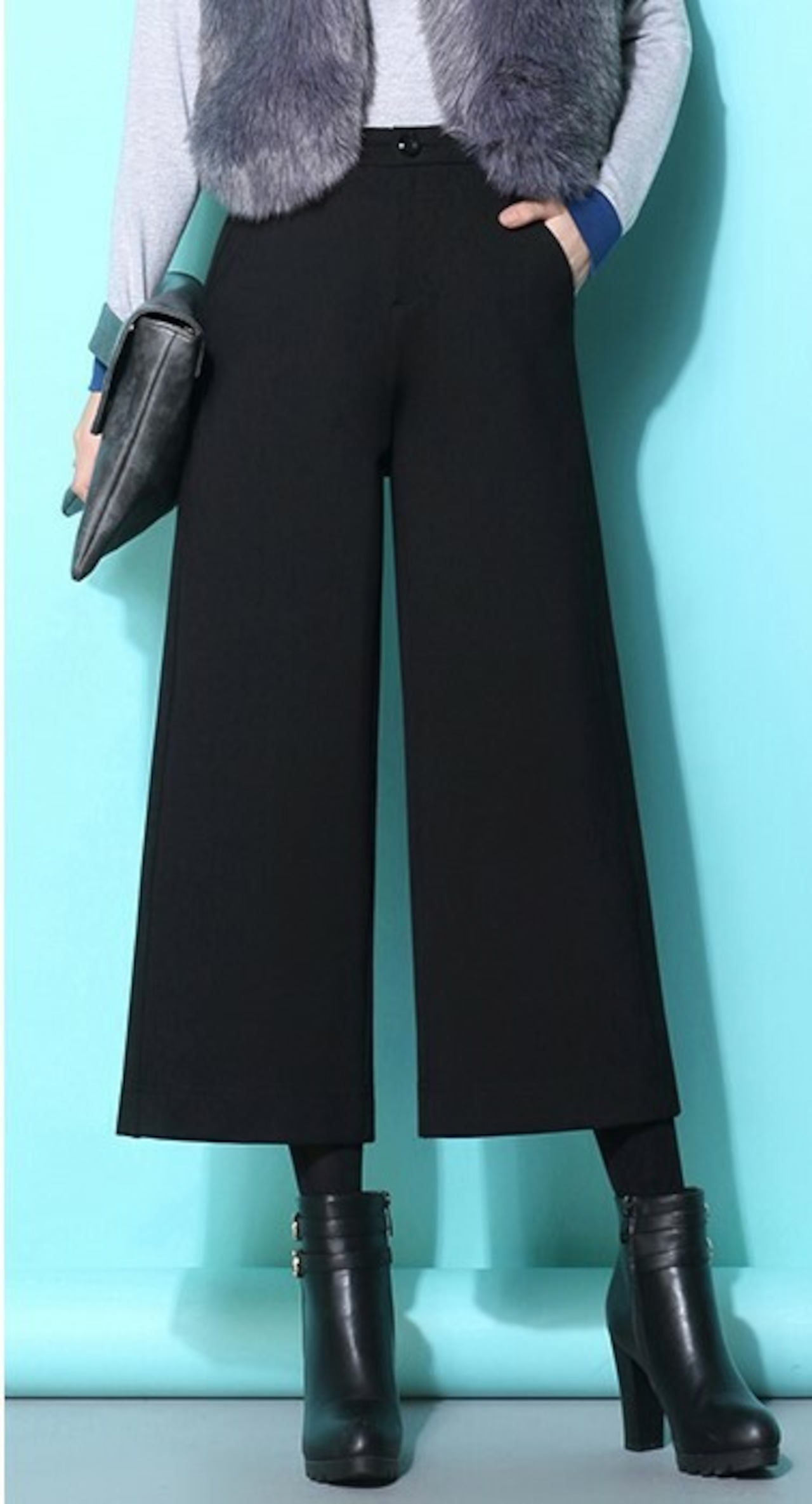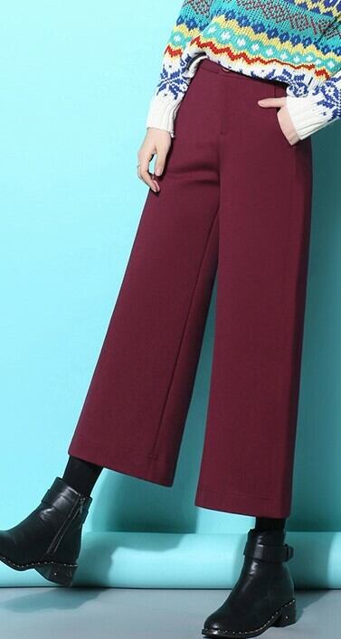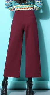 全3色 ワイドパンツ ハイウエスト 9分丈 無地 ゆったり 大人カジュアル ウエストボタン ブラック ボルドー キャメル 秋冬 通勤 通学 韓国 オルチャン