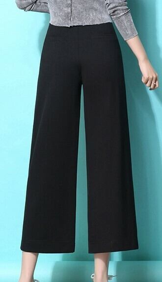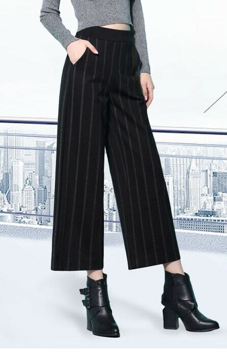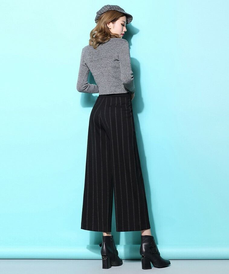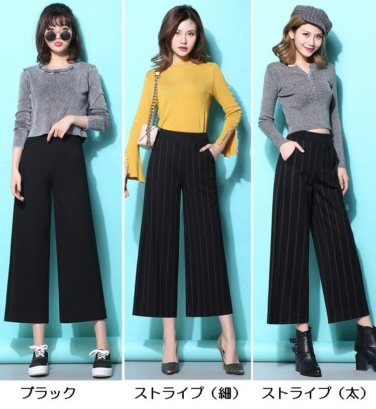 全3色 ワイドパンツ ドレープ ストライプ ブラック 秋 冬 大人カジュアル 9分丈 ゆったり 大きいサイズ ウエストゴム ハイウエスト 通勤 通学 シンプル ベーシック 韓国 オルチャン