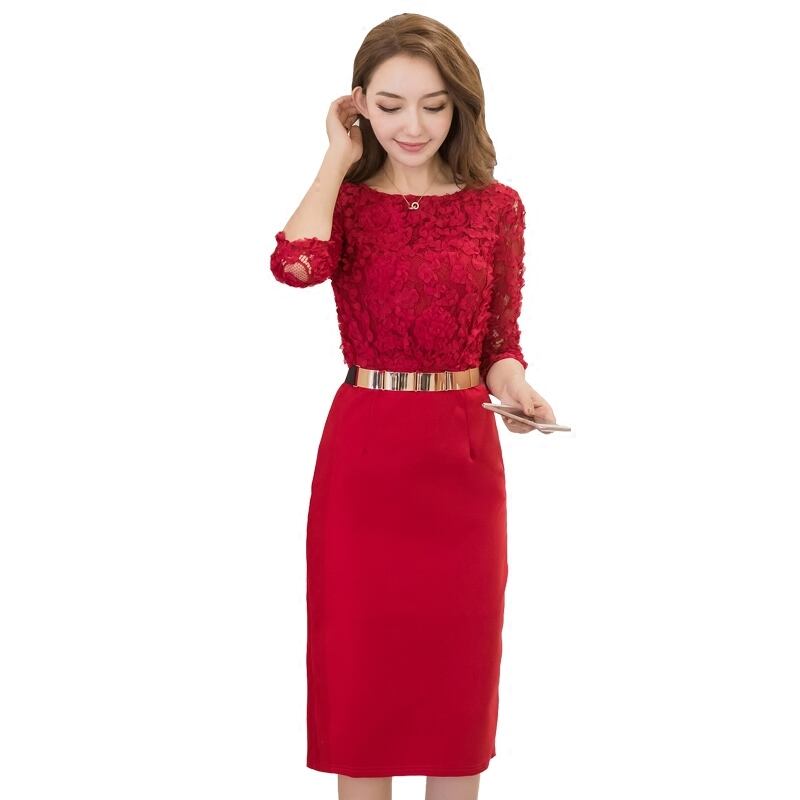全2色 ブラック レッド ワンピース タイト ひざ丈 バックスリット セクシー フォーマル 上品 エレガント お呼ばれ 長袖 デート 女子会