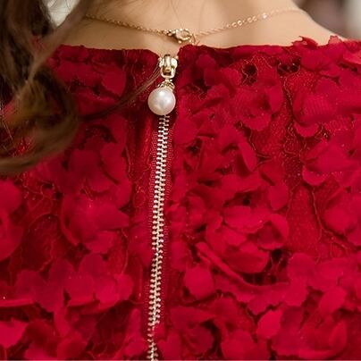 上半身のレースがポイントの素敵なワンピースです。