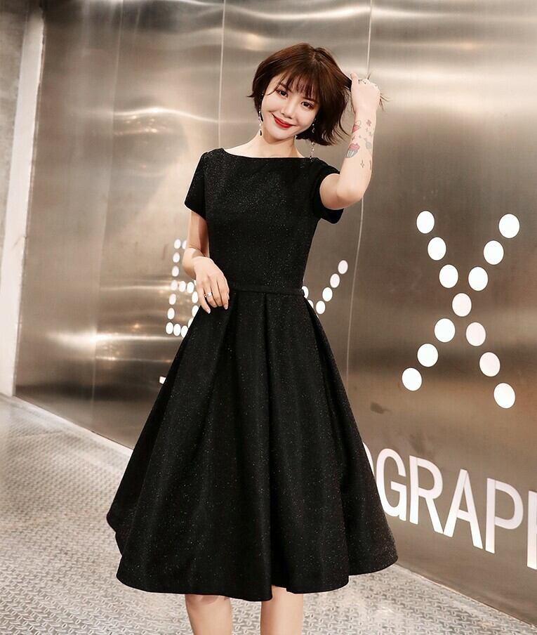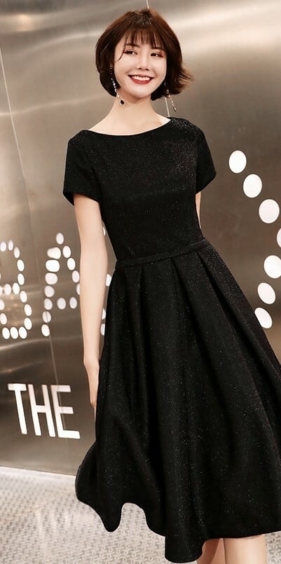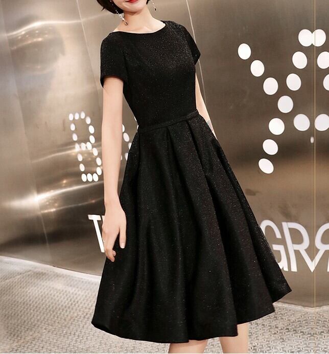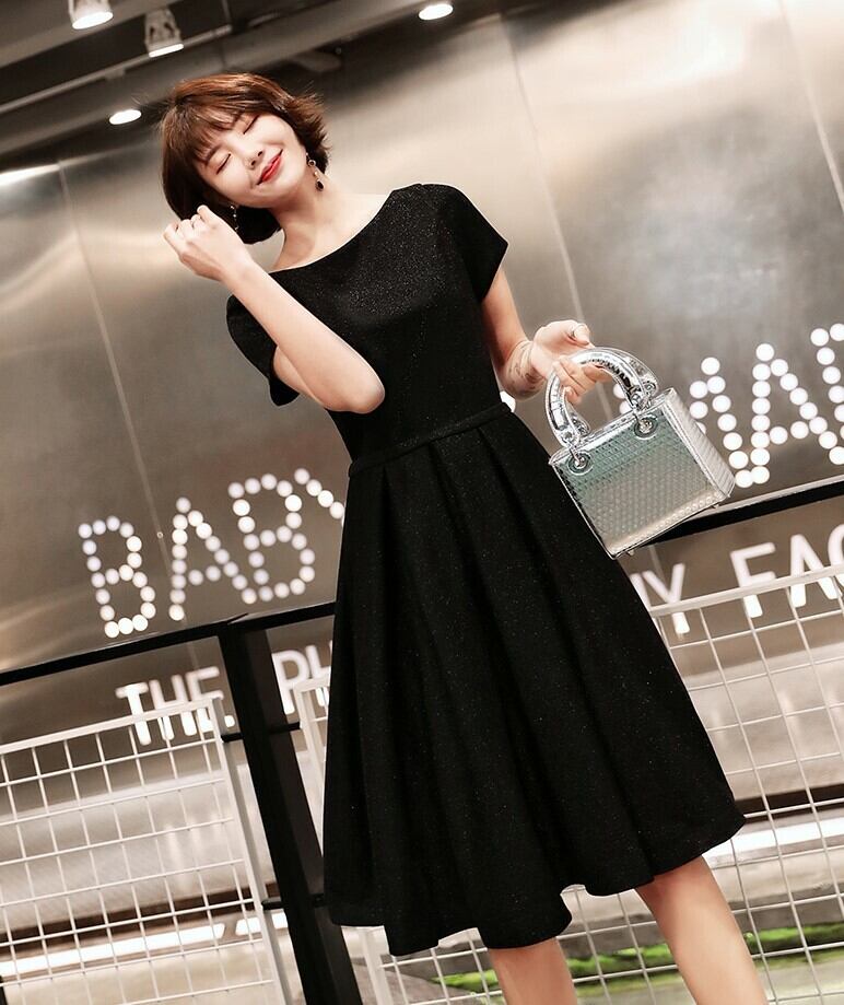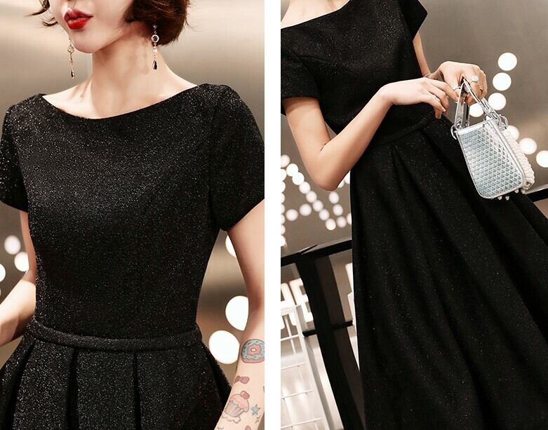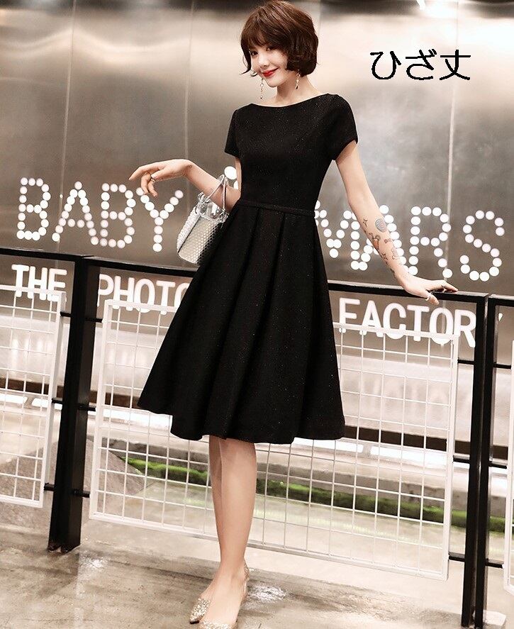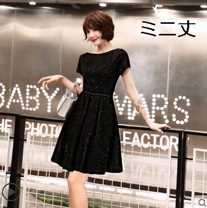 全2種 丈選べるワンピース ドレス ミニ丈 ひざ丈 半袖 ブラック シンプル ベーシック ラウンドネック ラメ 秋 冬 エレガント パーティ 上品 お食事会 結婚式 お呼ばれ 韓国