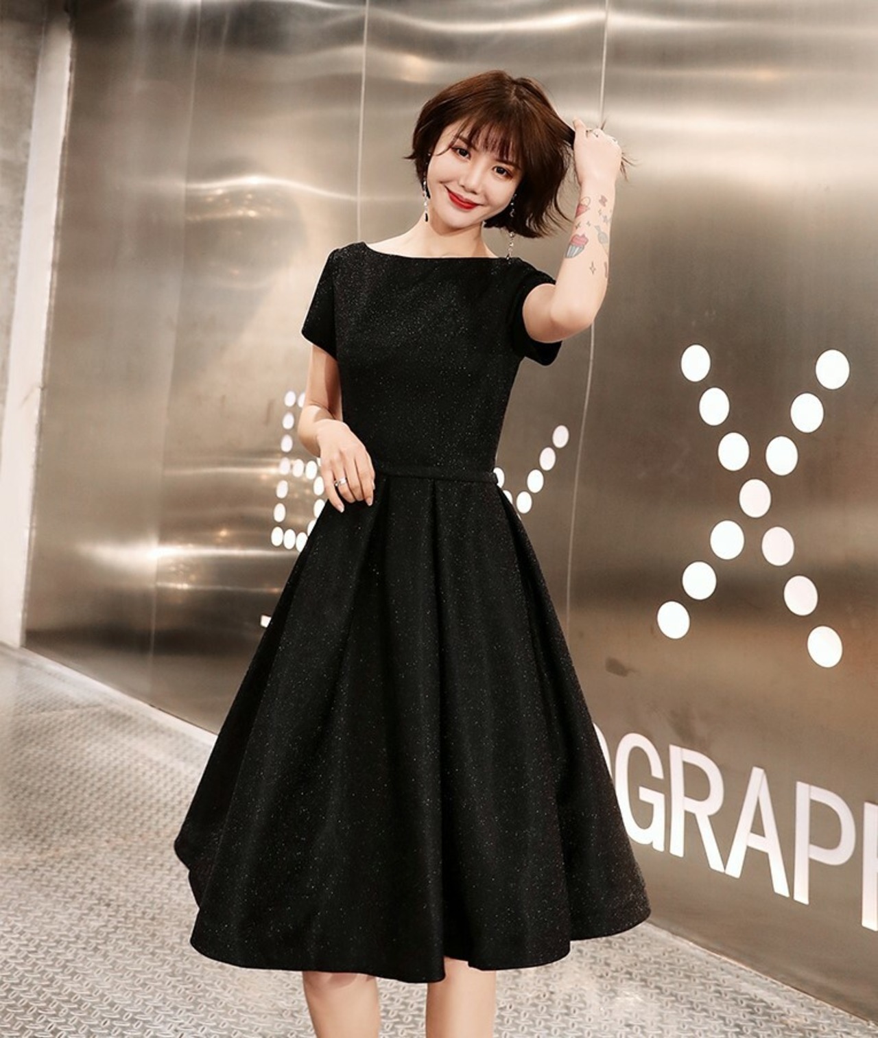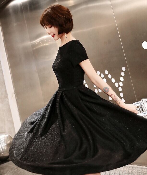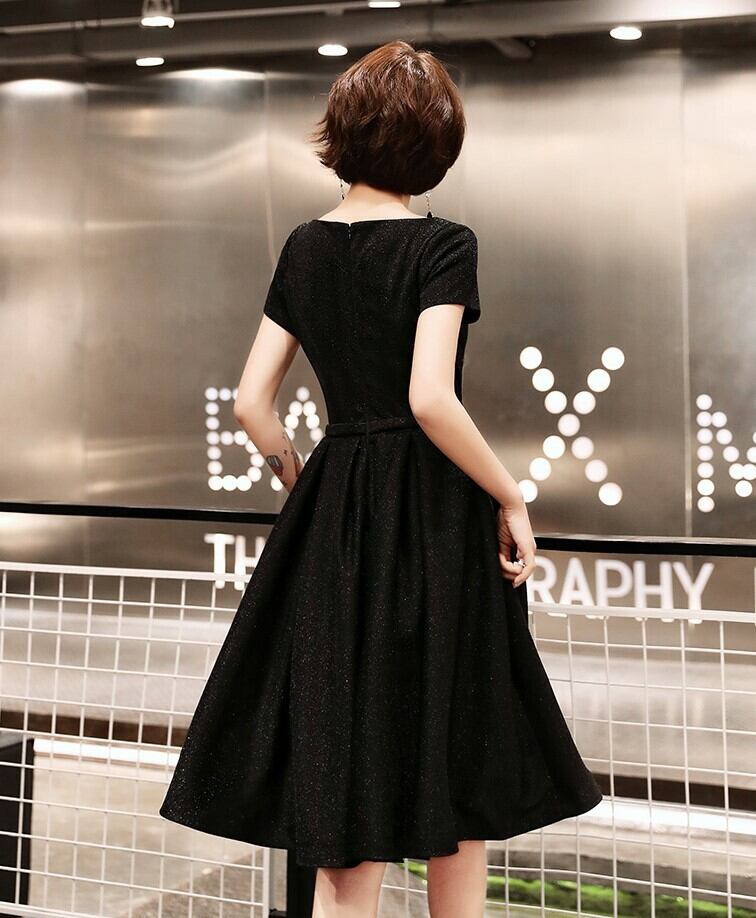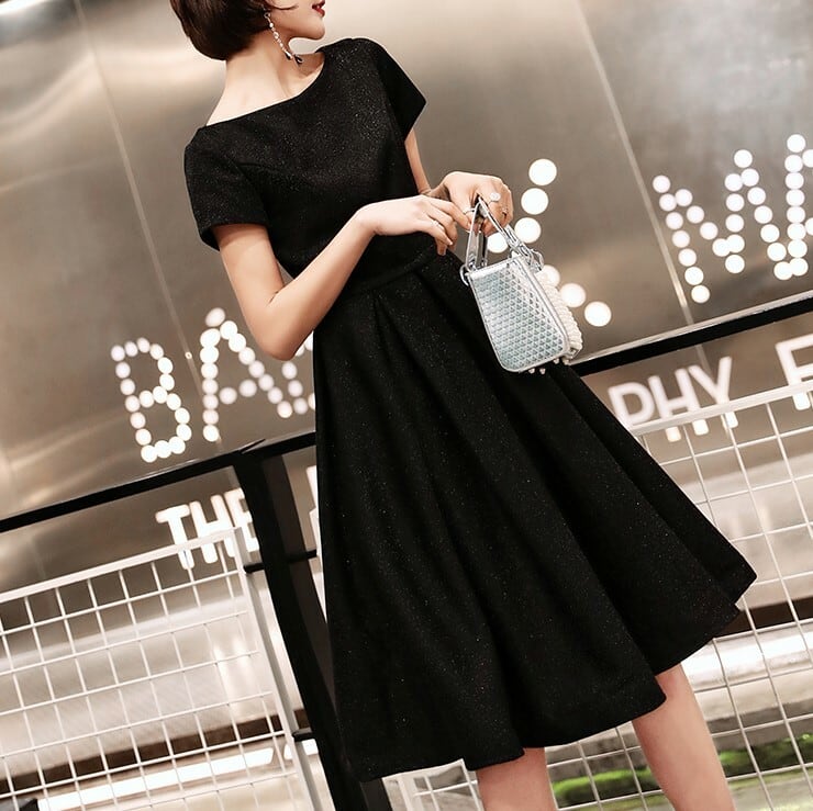 全2種 丈選べるワンピース ドレス ミニ丈 ひざ丈 半袖 ブラック シンプル ベーシック ラウンドネック ラメ 秋 冬 エレガント パーティ 上品 お食事会 結婚式 お呼ばれ 韓国