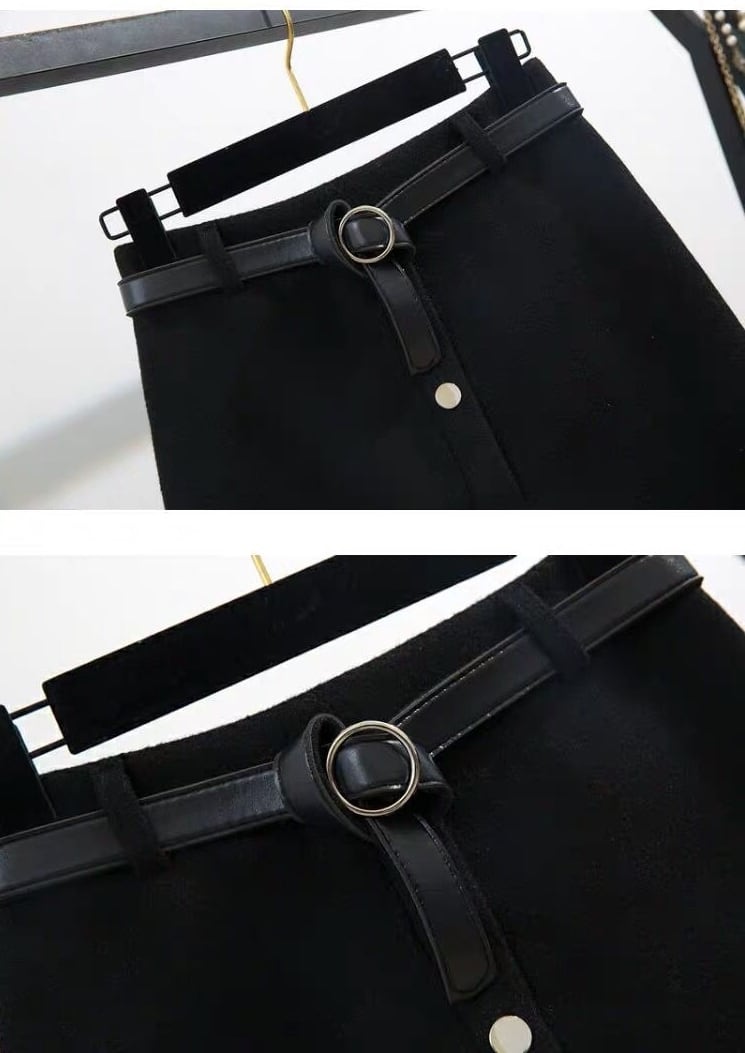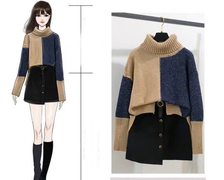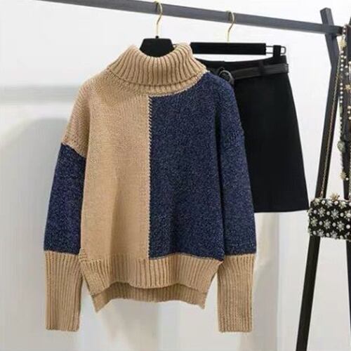 セットアップ プルオーバー スカート ミニ丈 ハイネック タートルネック ベルベット バイカラー 秋 冬 ニット セーター 前ボタン