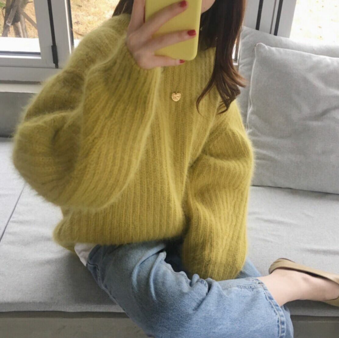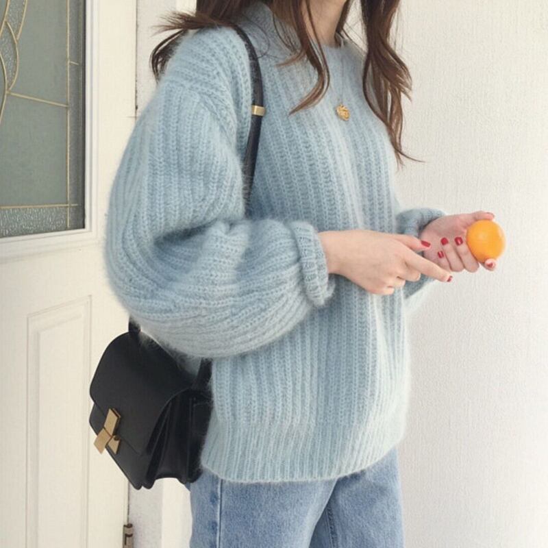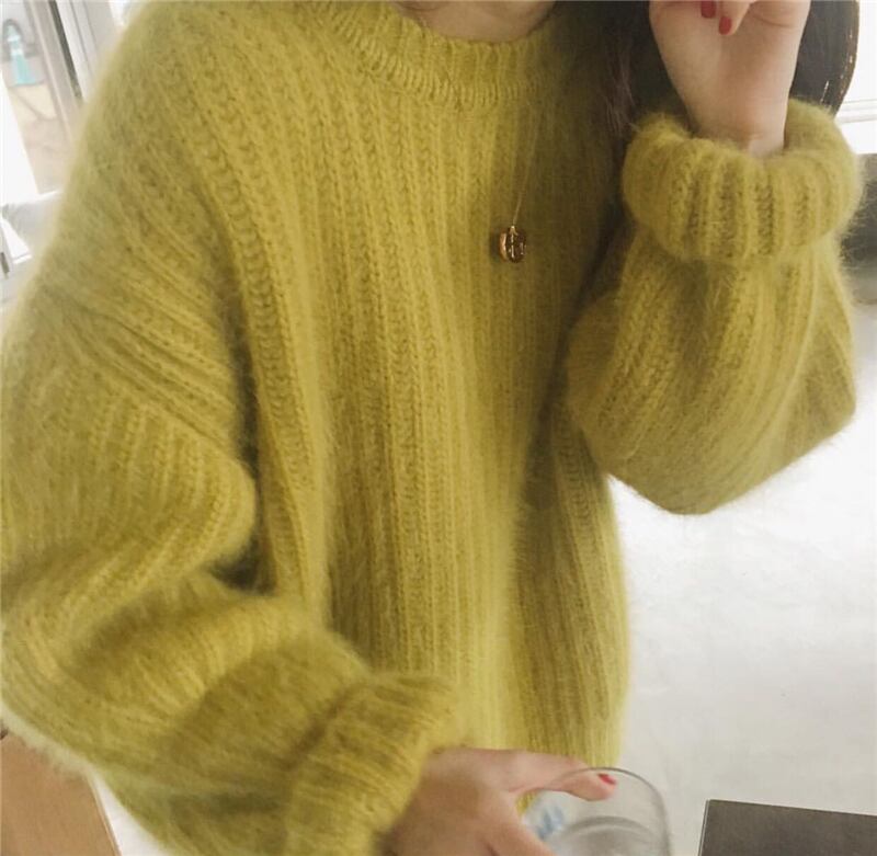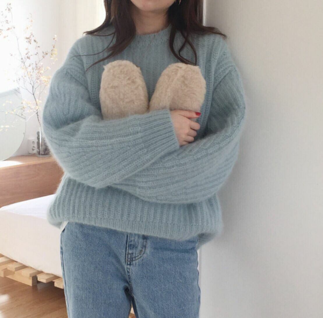 全4色 セーター ニット ラウンドネック ゆったり ルーズ イエロー ピンク ブラウン ブルー 長袖 ドロップショルダー 大人カジュアル 大人可愛い ナチュラル ベーシック 韓国 オルチャン