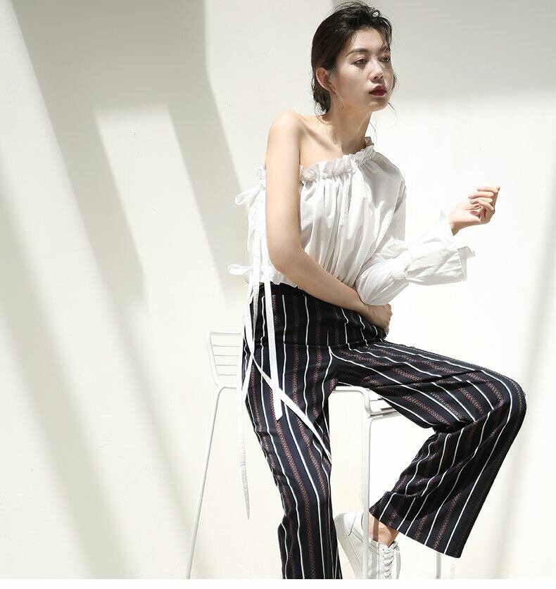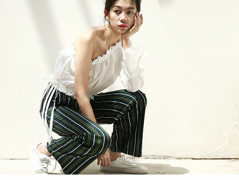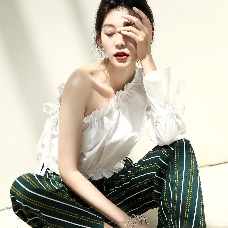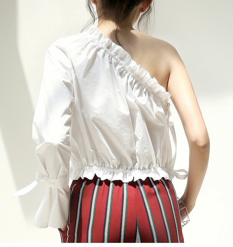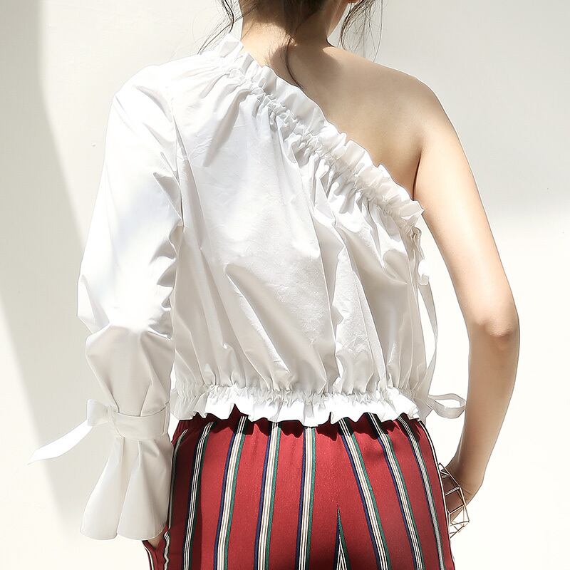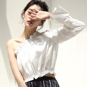 ワンショルダーが今年らしい印象のブラウスです。