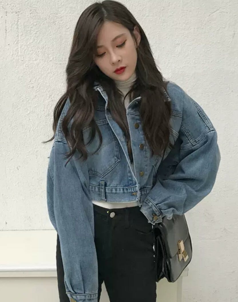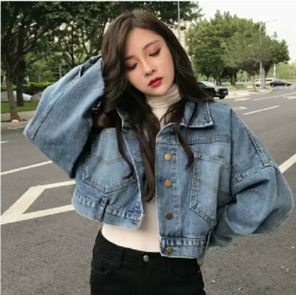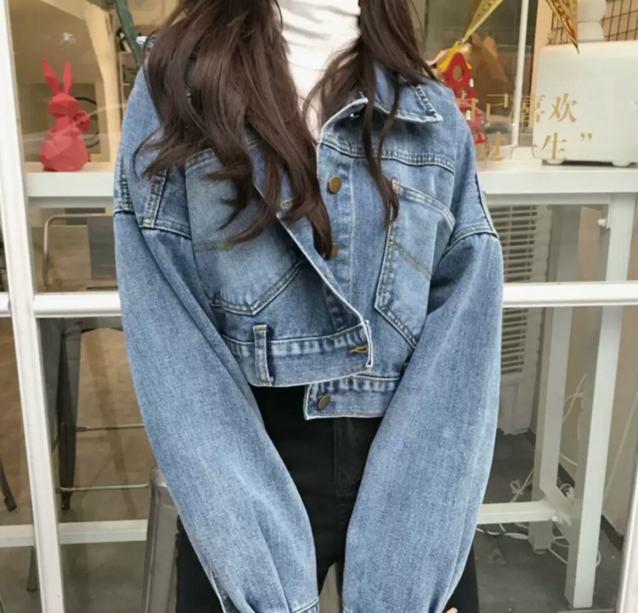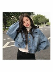 デニム ジャケット Gジャン ショート丈 ボリューム袖 ゆったり 秋冬 ルーズ 華奢見え