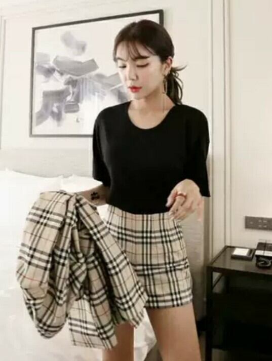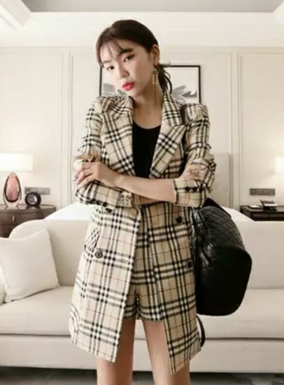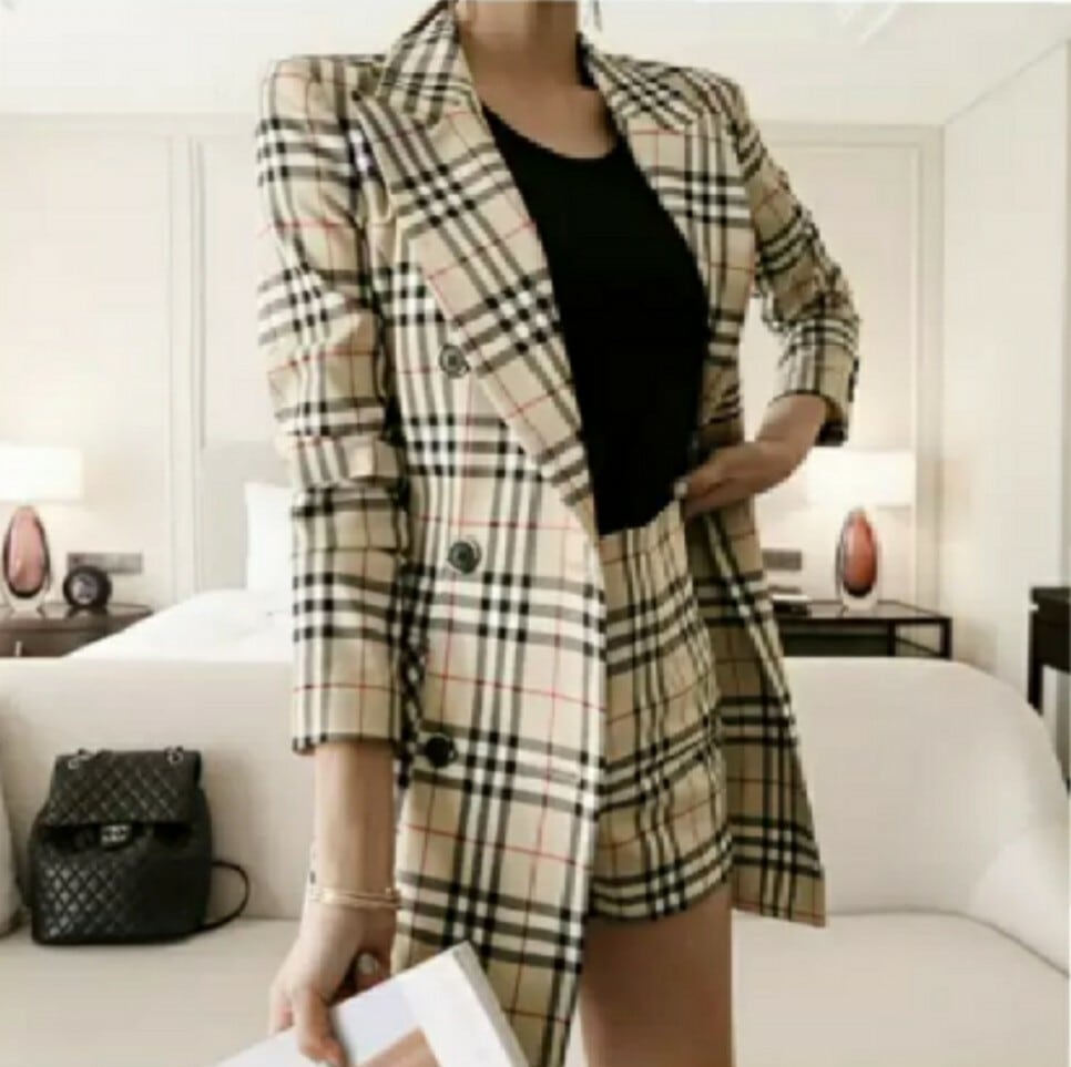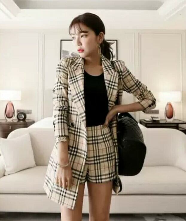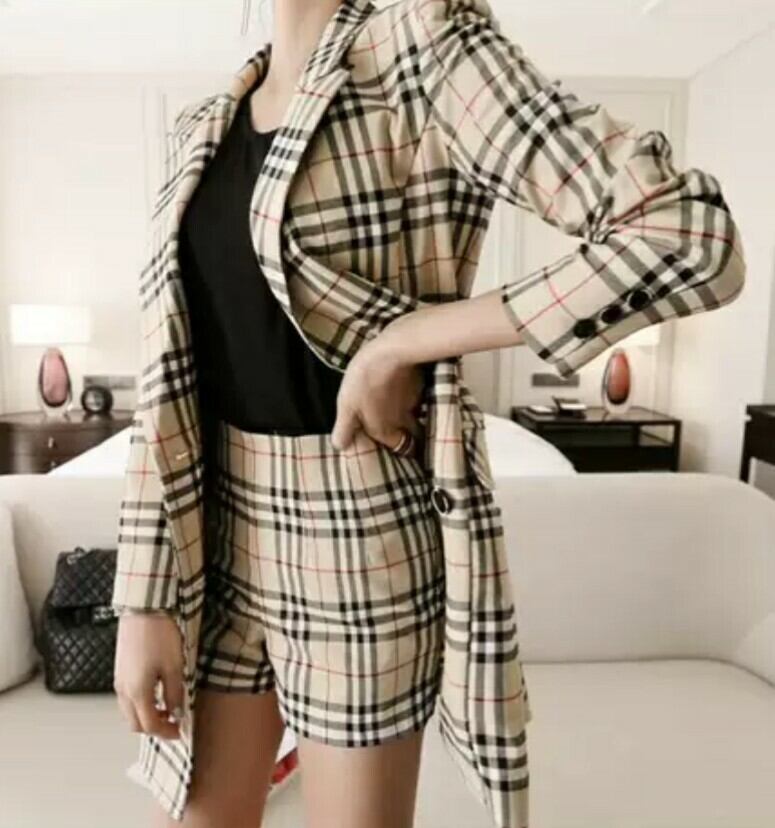 セットアップ チェック ジャケット ショートパンツ ハイウエスト セミロング丈 秋冬 脚長効果 バッグシルエット