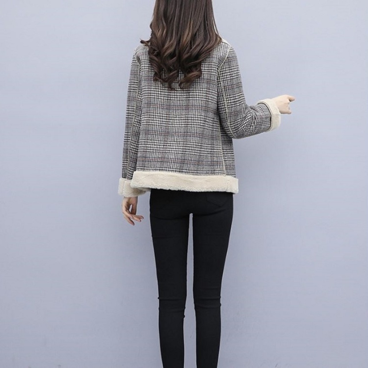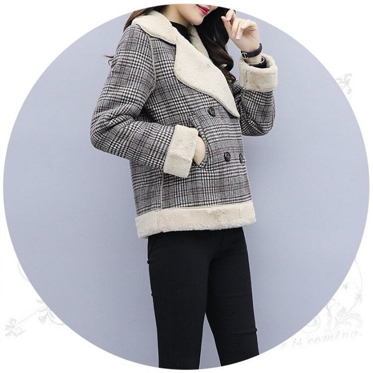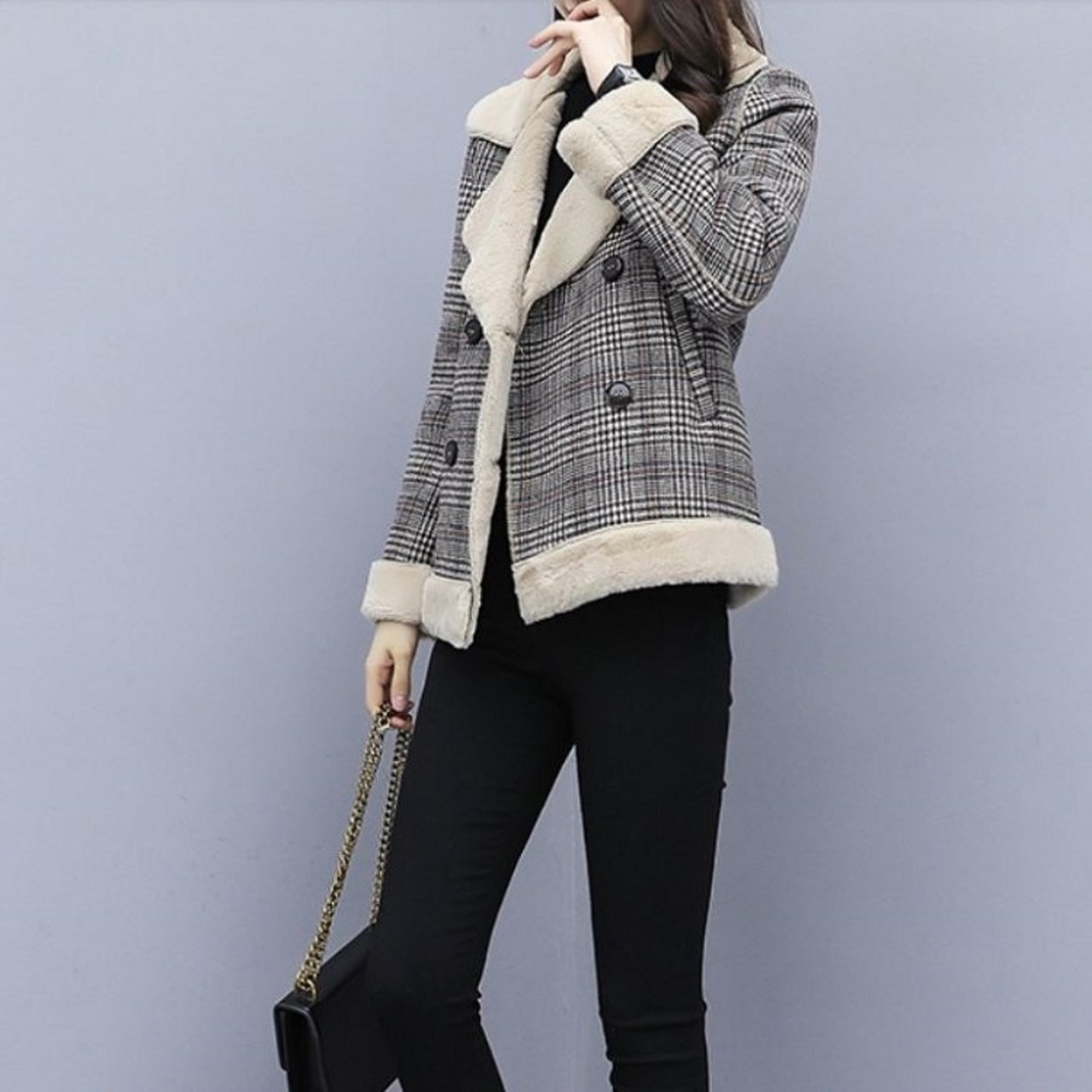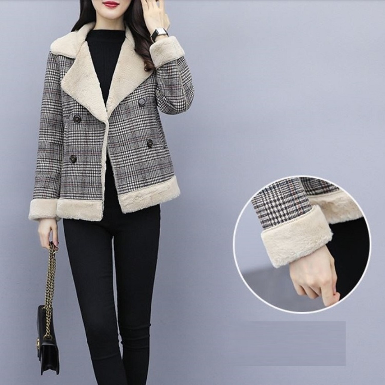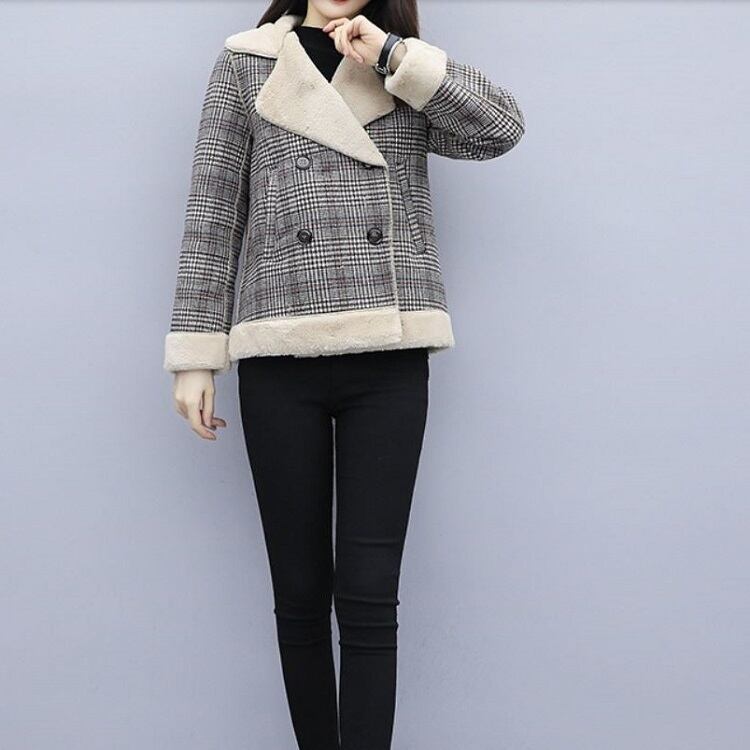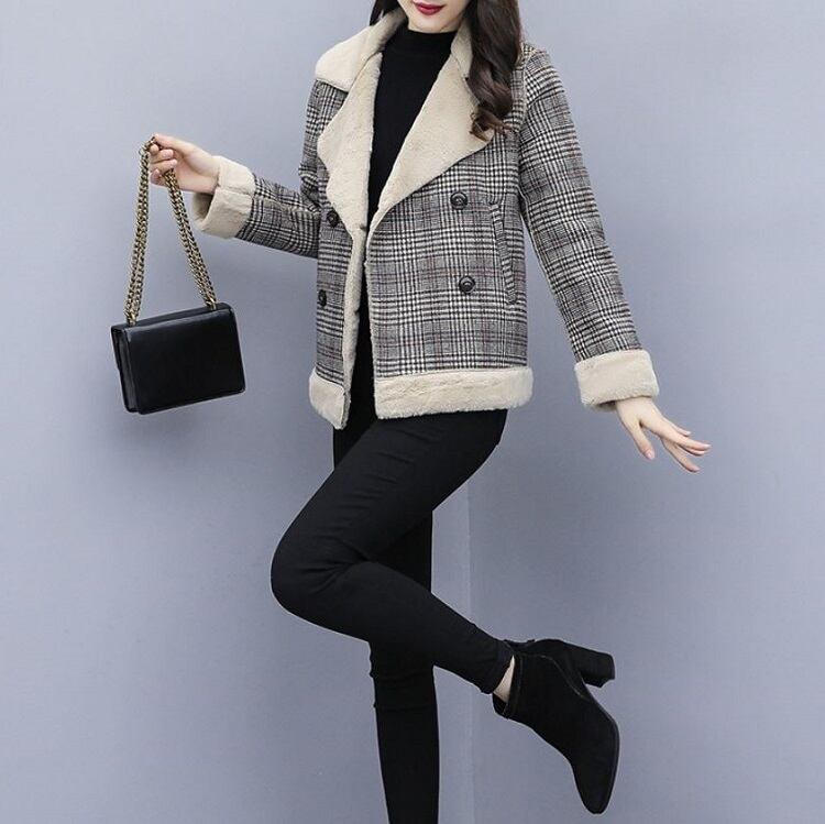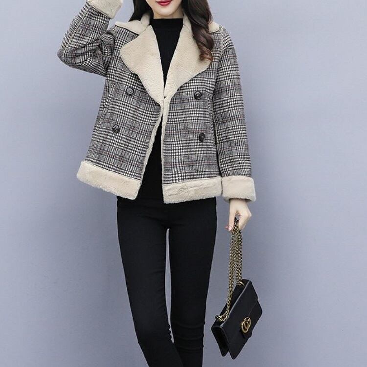 ボアジャケット ボアブルゾン グレンチェック ショートジャケット アウター 防寒 きれいめ ゆったり カジュアル 秋冬