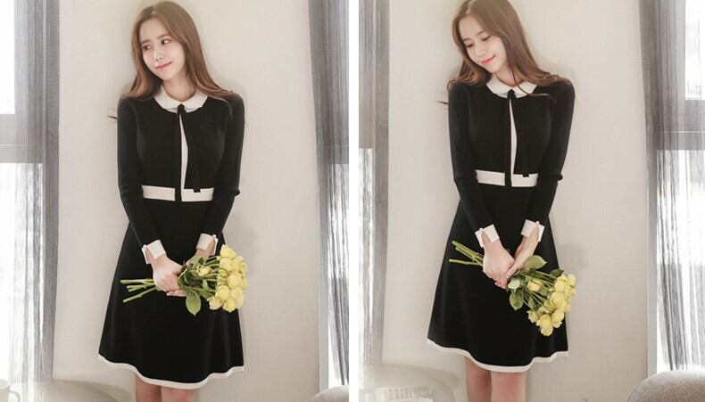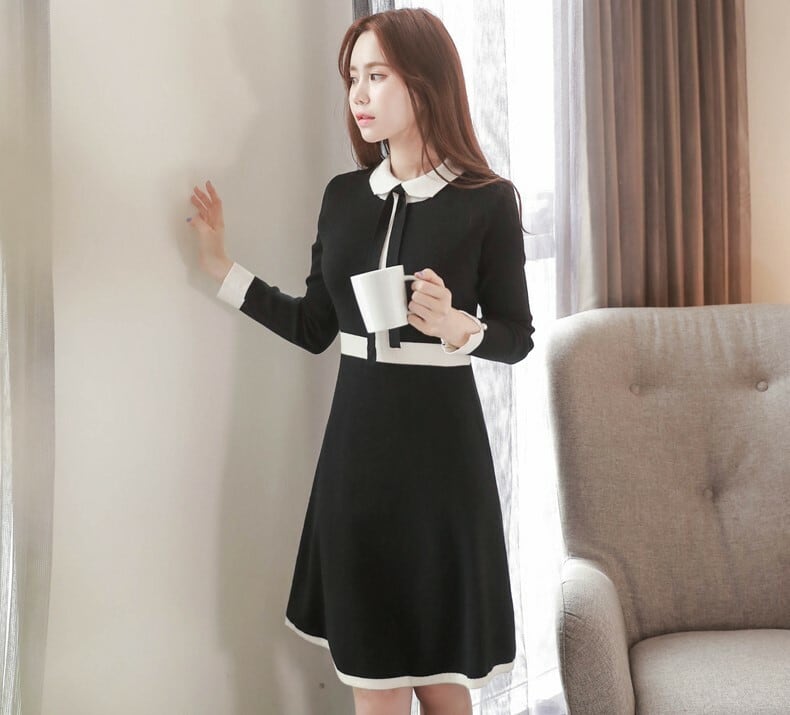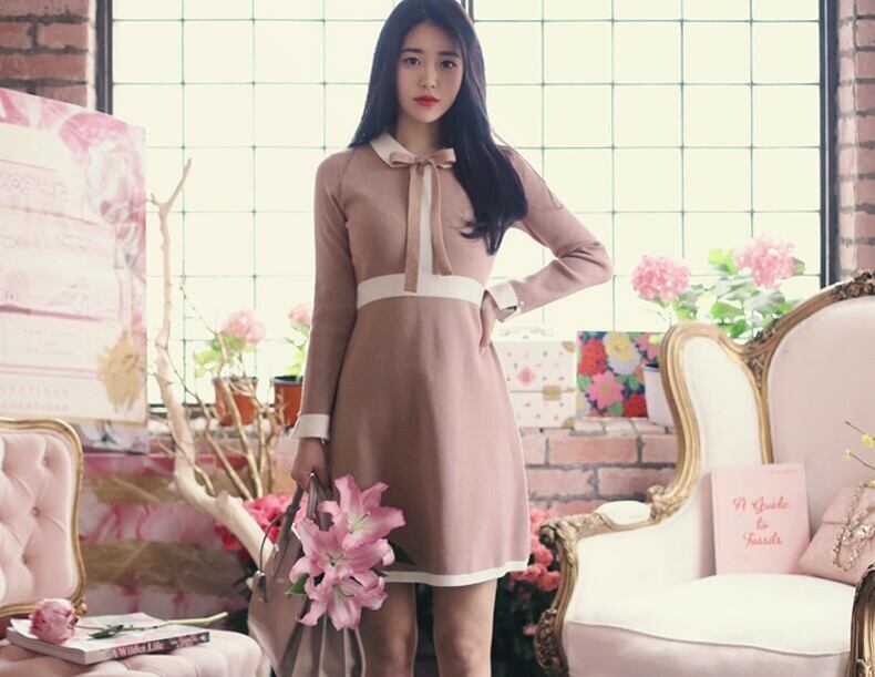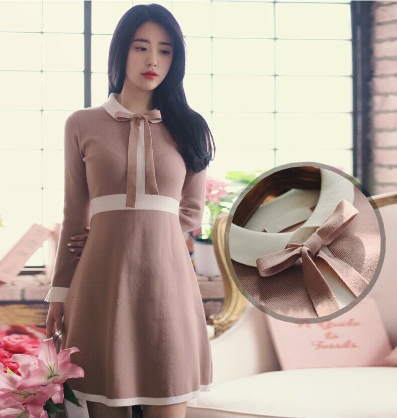 可愛い丸襟がポイントのニットワンピース♪