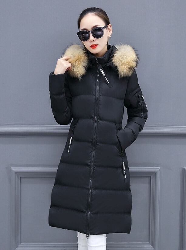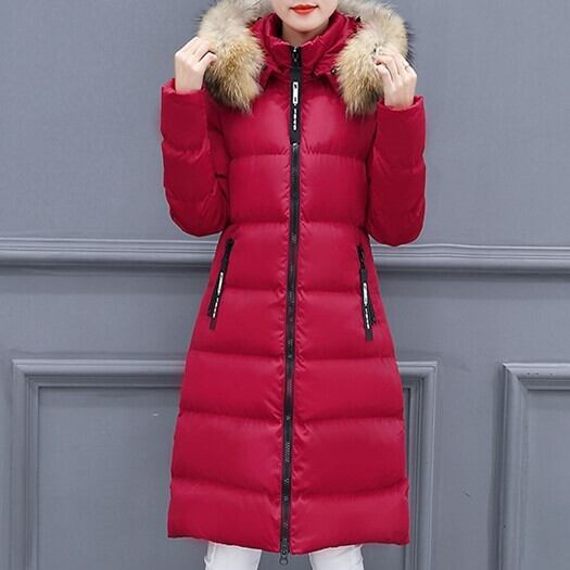 全3色 ダウンコート アウター 羽織 フード ファー ミモレ丈 長袖 スリム タイト 大人カジュアル 休日 通勤 通学 シンプル 秋 冬 韓国 オルチャン