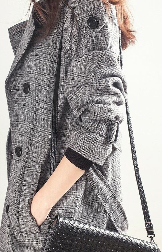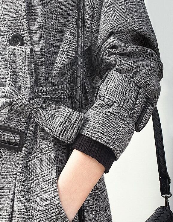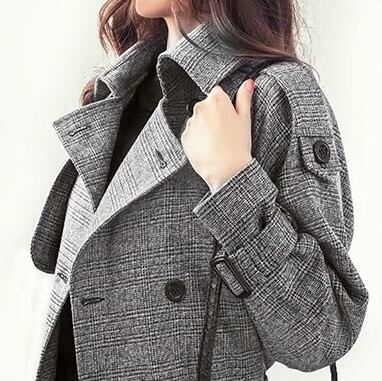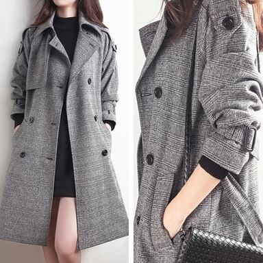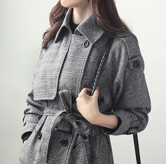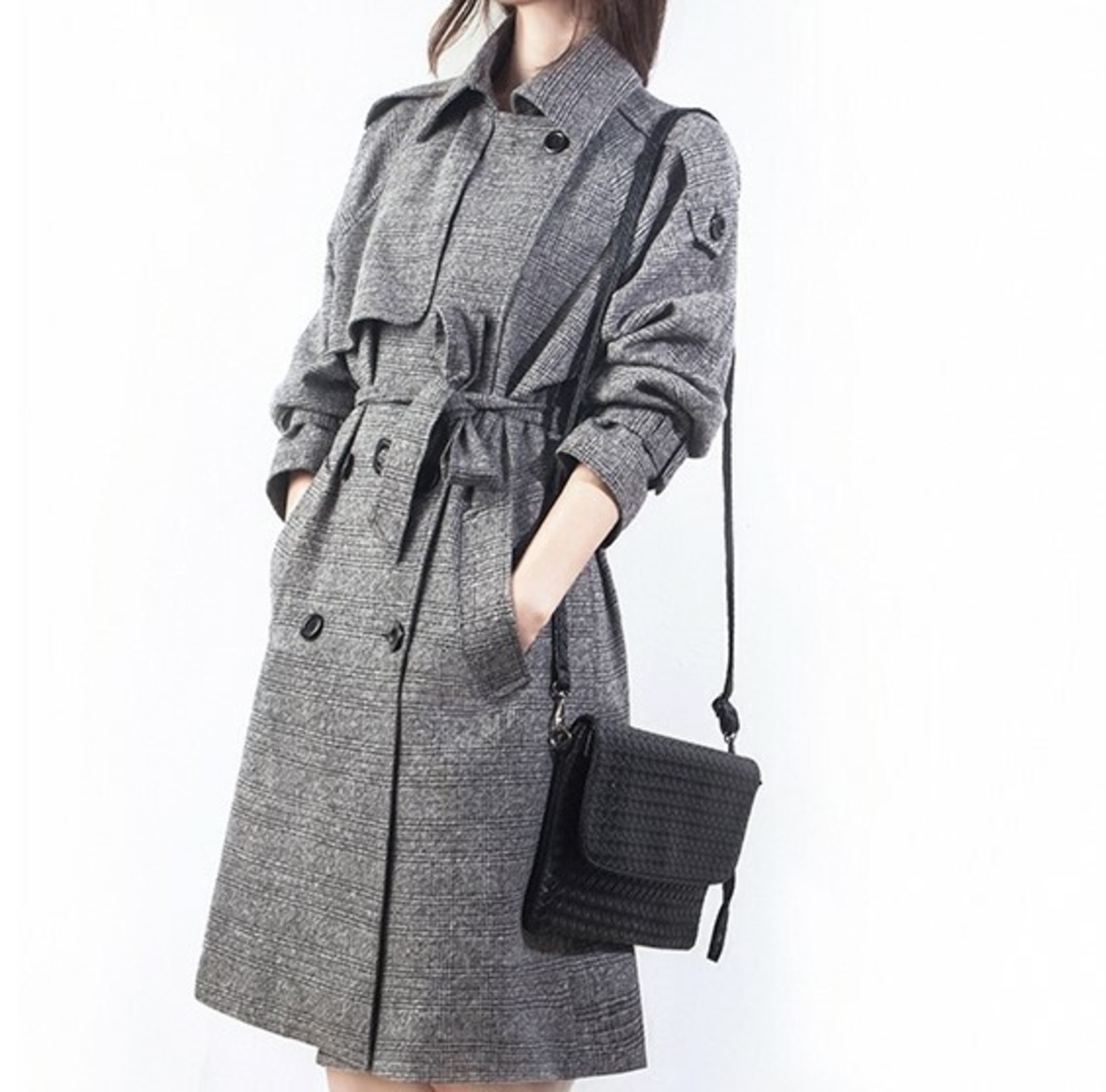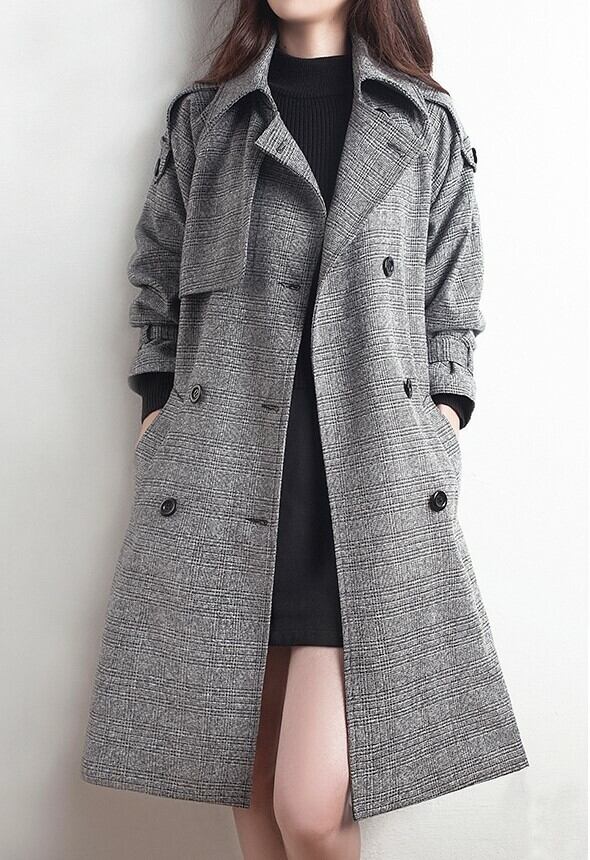 グレンチェック柄コート トレンチコート ミドル丈コート アウター 羽織 テーラードカラー ダブルボタン ラグランスリーブ 長袖 通勤 通学 エレガント シンプル ベーシック 韓国 オルチャン