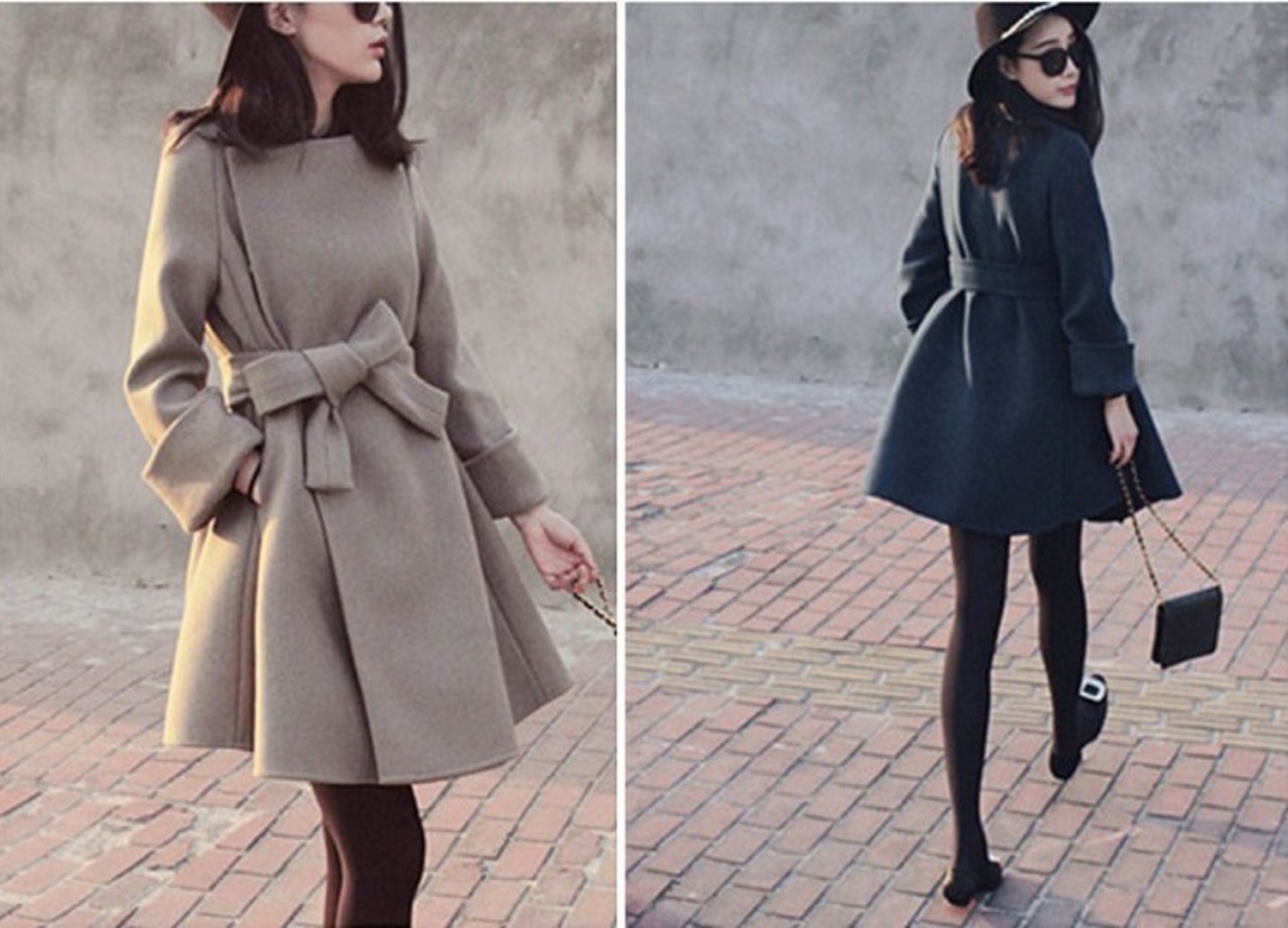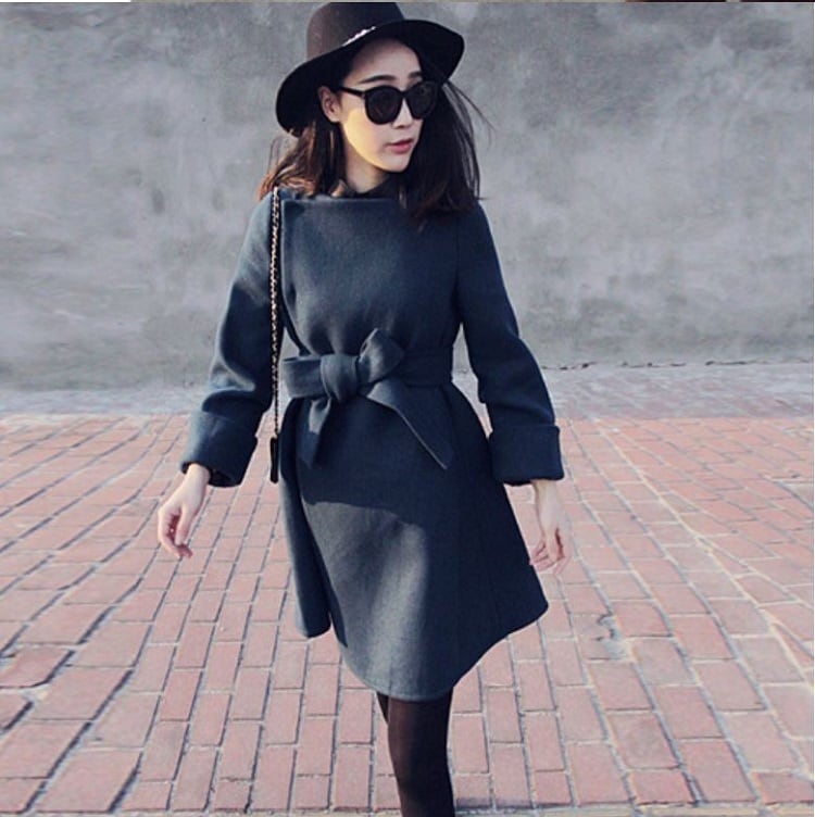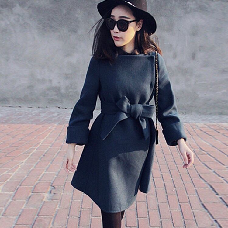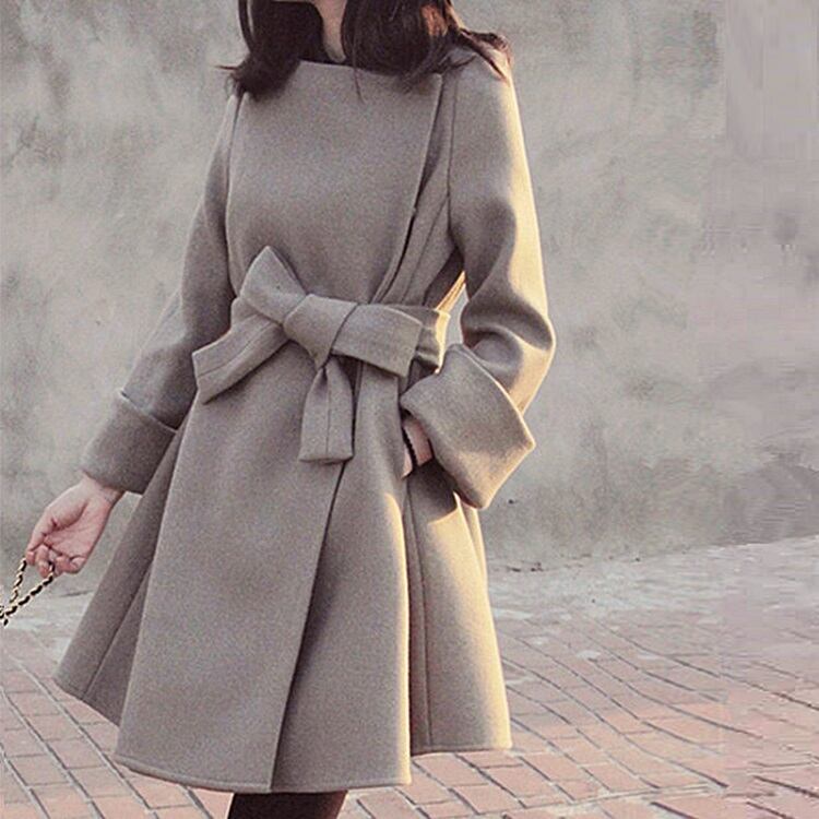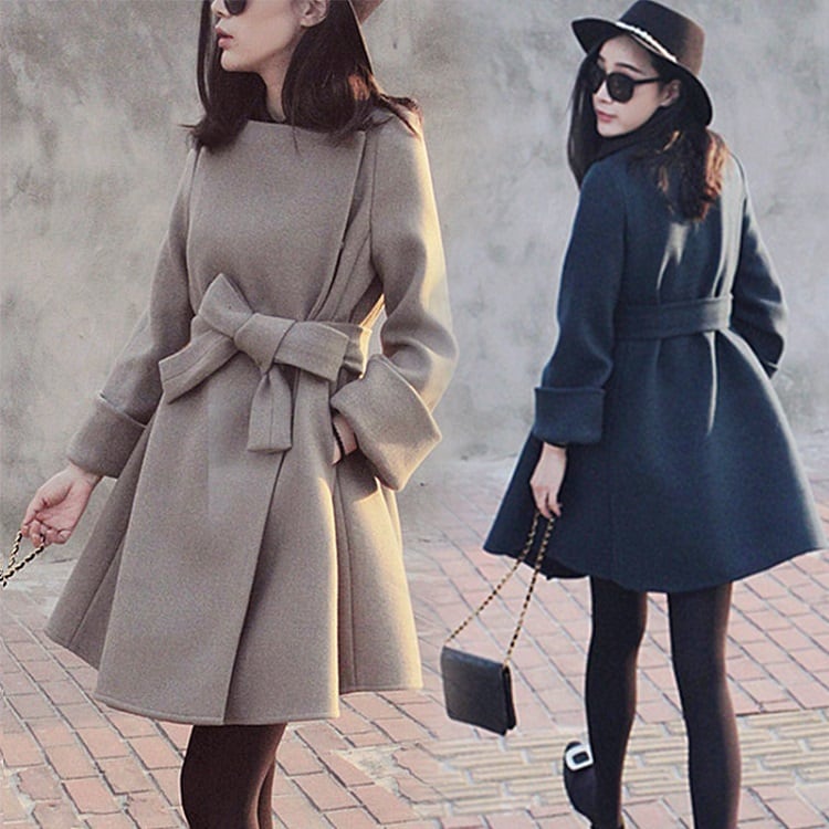 全2色 ノーカラーコート ショートコート ウエストリボン Aライン エレガント 無地 きれいめ フェミニン お出かけ オフィス 秋冬 ライトグレー ネイビー