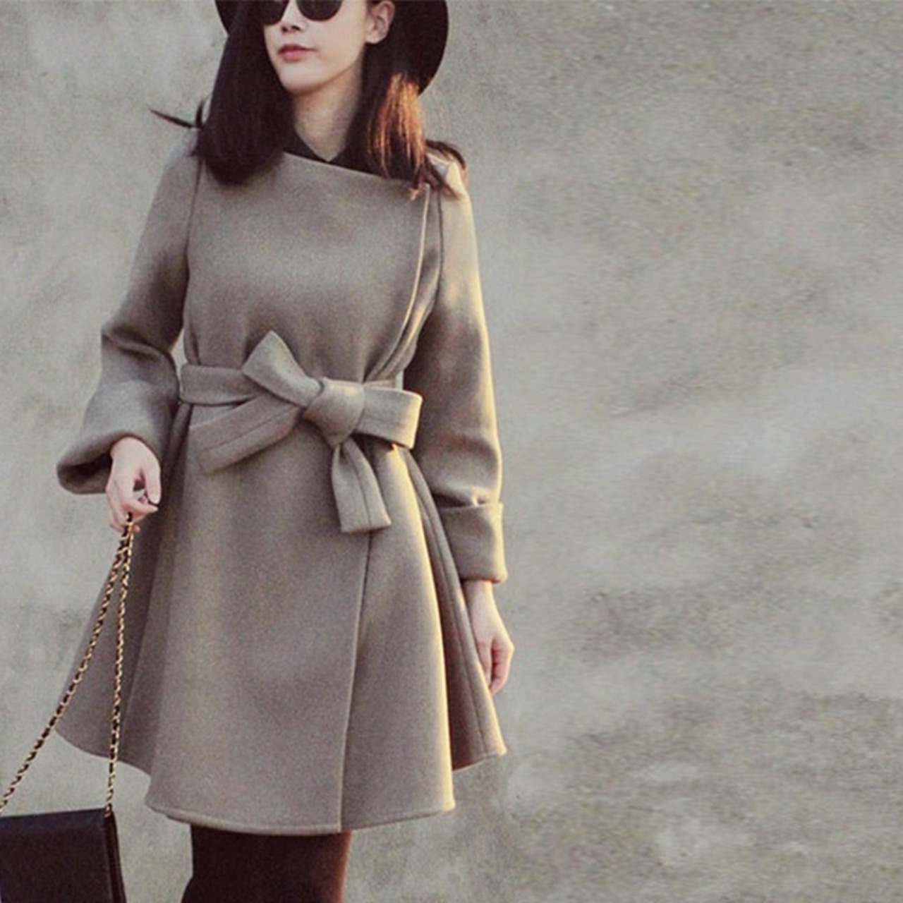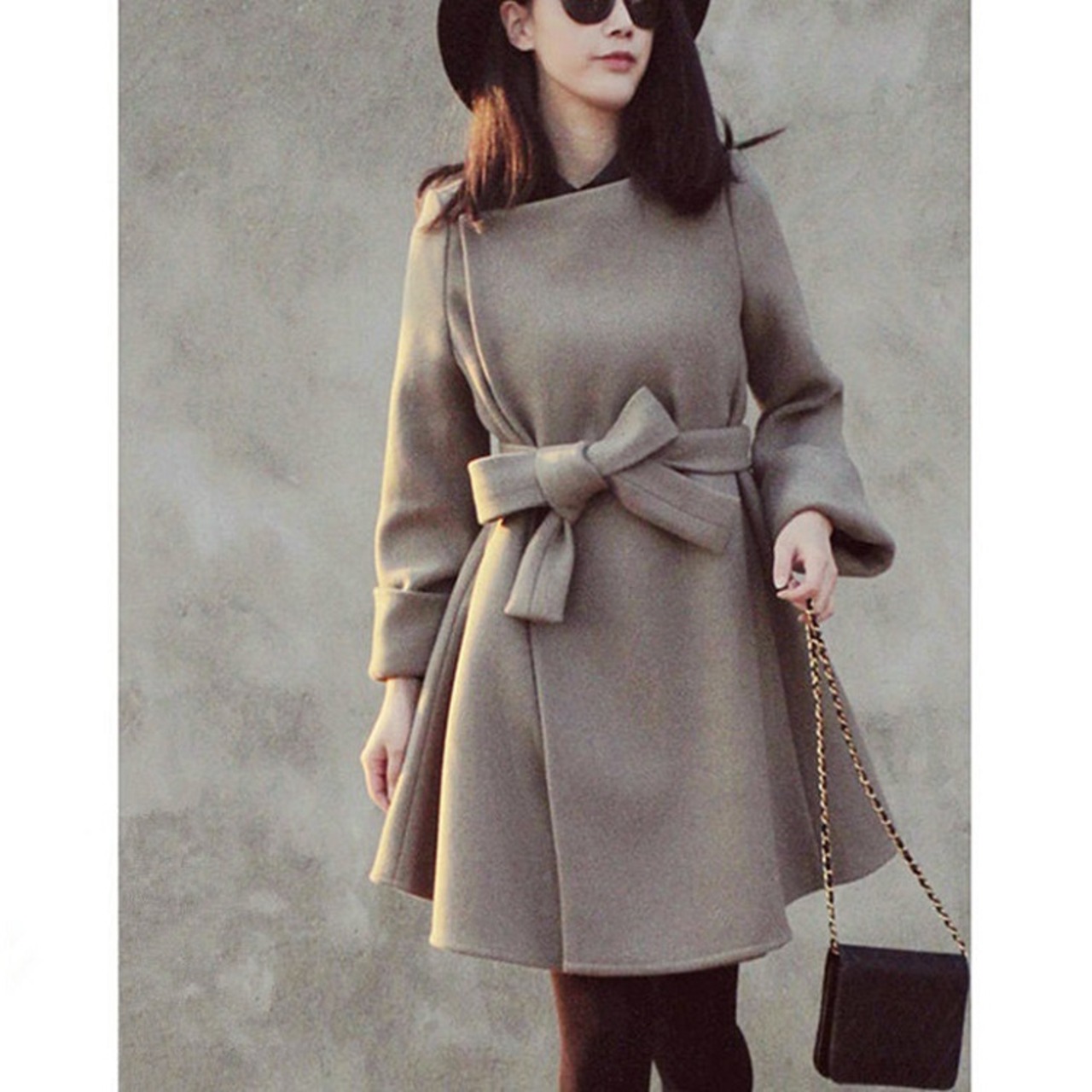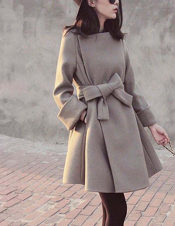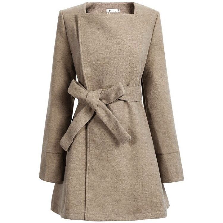 全2色 ノーカラーコート ショートコート ウエストリボン Aライン エレガント 無地 きれいめ フェミニン お出かけ オフィス 秋冬 ライトグレー ネイビー