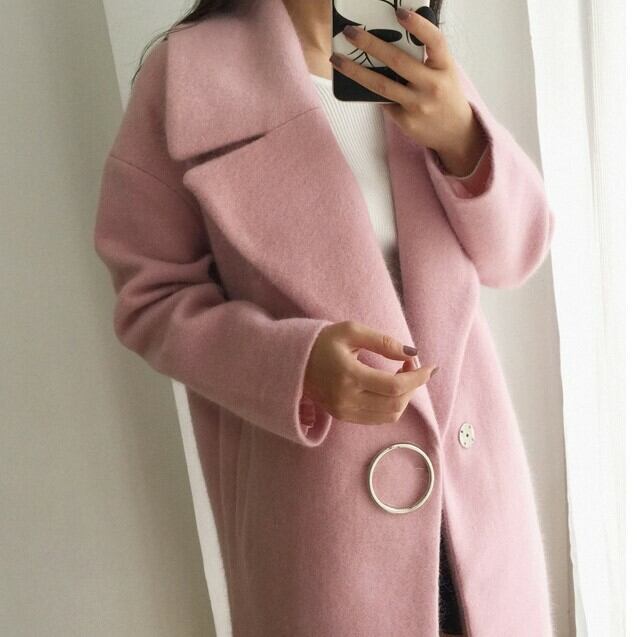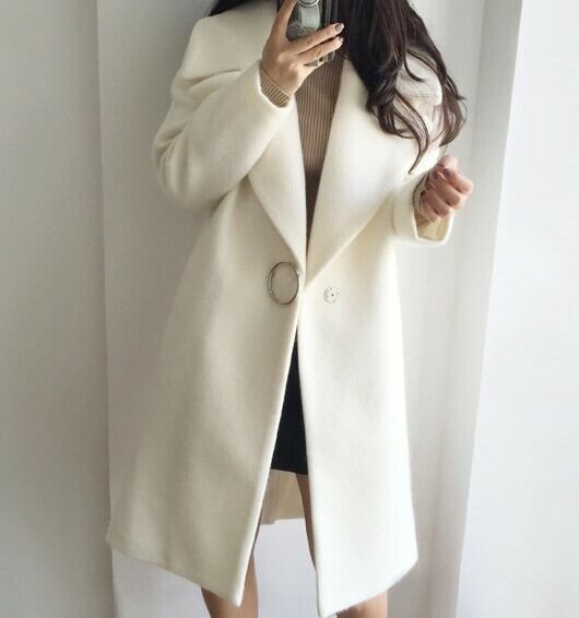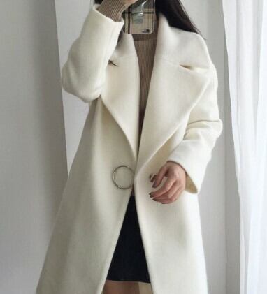 全2色 テーラードカラーコート ワンボタン ミドル丈コート アウター 羽織 長袖 ドロップショルダー 秋 冬 通勤 通学 上品 エレガント 韓国 オルチャン