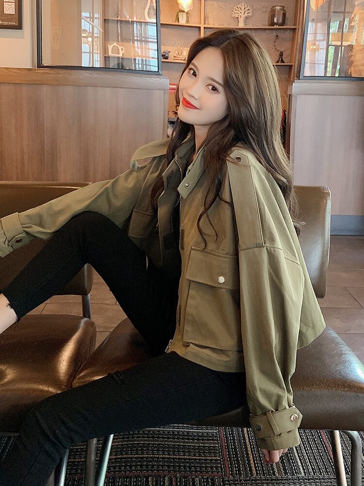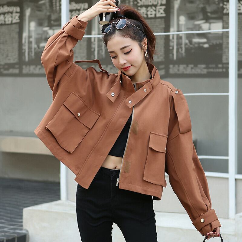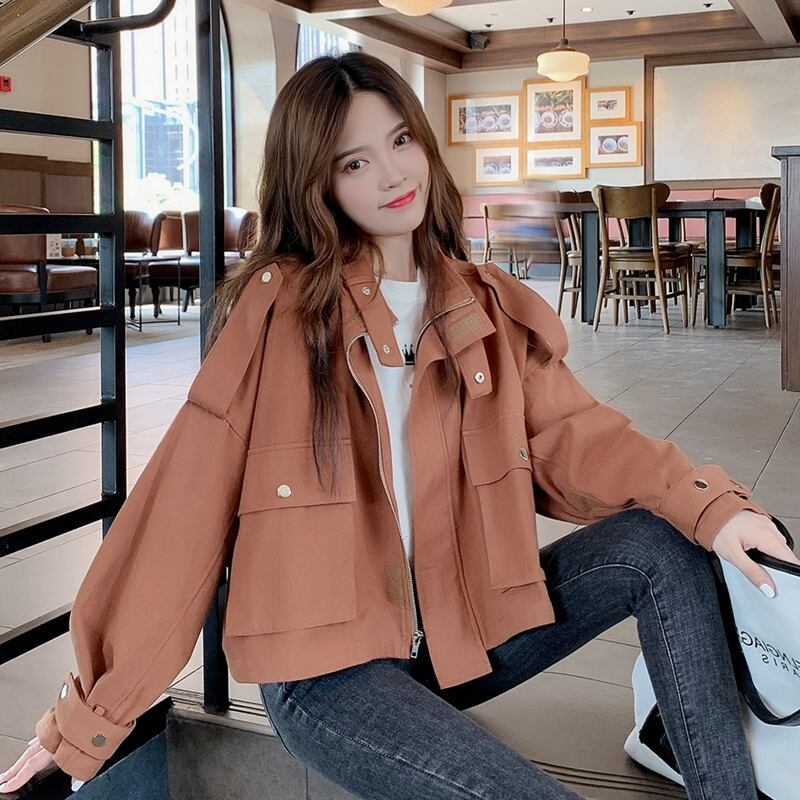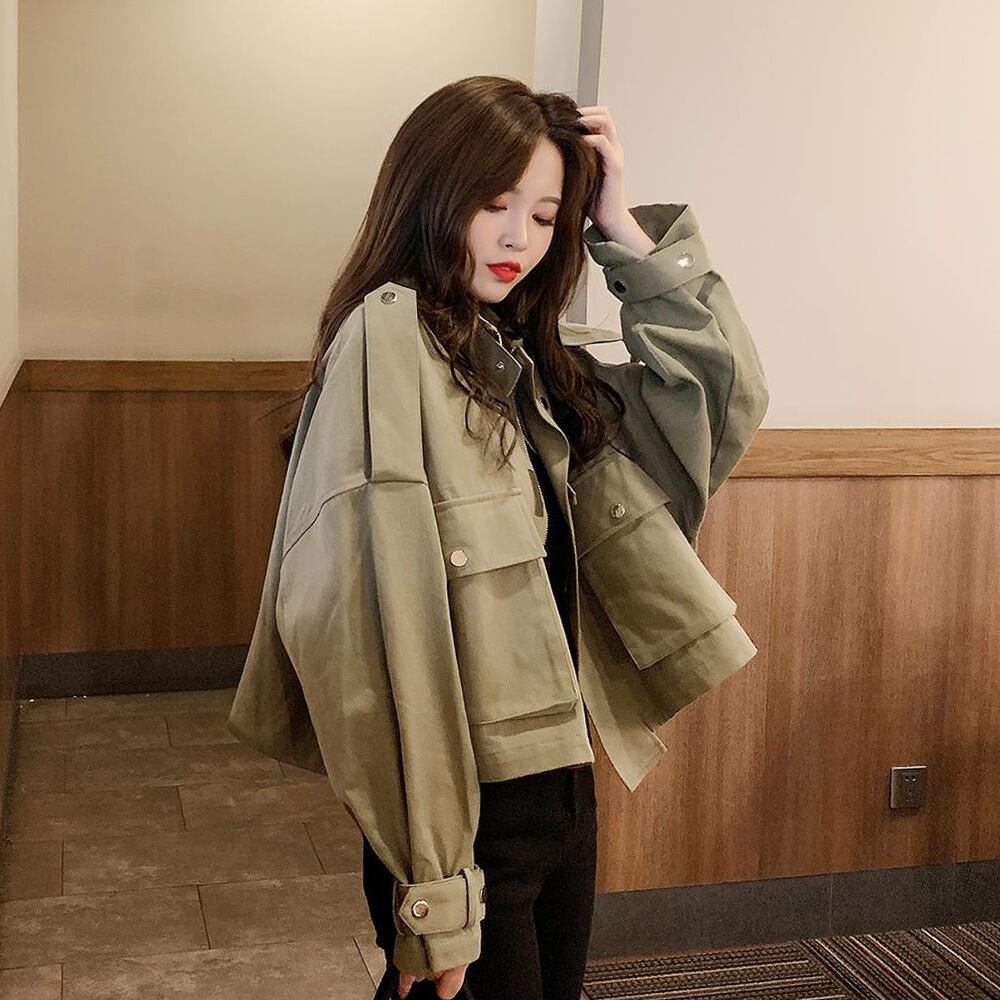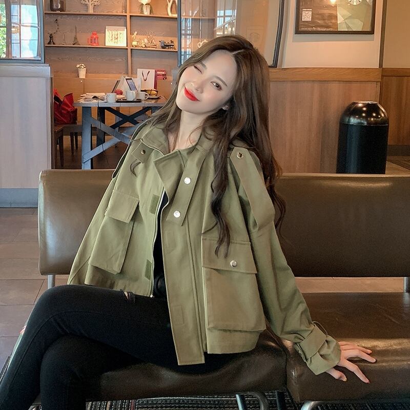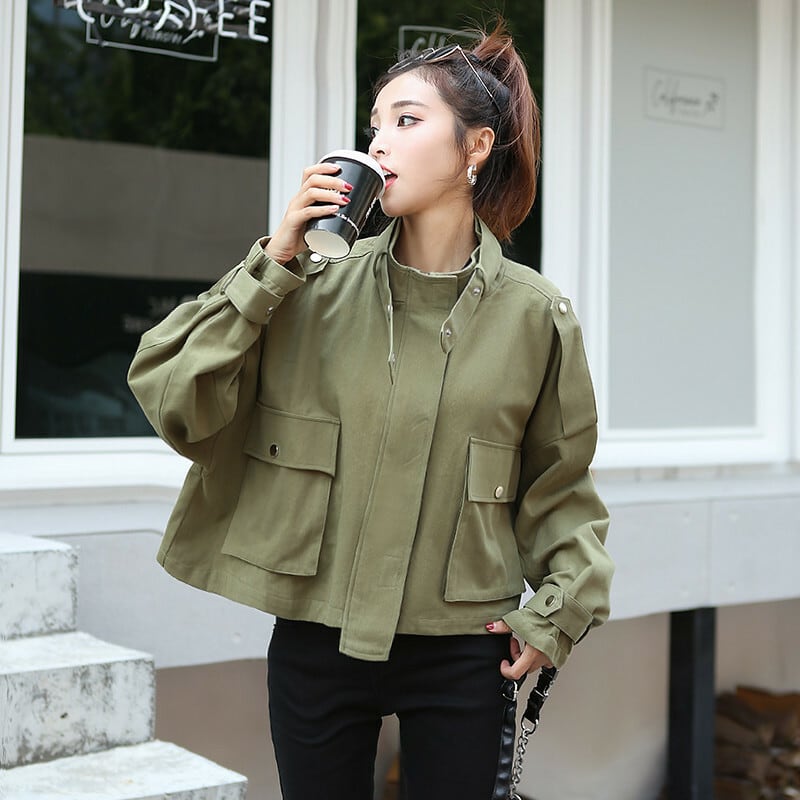 全2色 ブルゾン アウター 羽織 コート ウインドブレカー ジャンパー ミリタリー スポーティ ショート丈 ハイネック 大人カジュアル 秋 冬 通勤 通学 休日 韓国 オルチャン