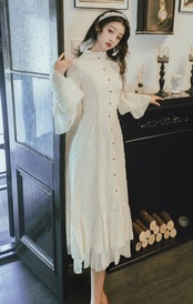 襟元と袖口フリルが大人可愛いドレスワンピース♪