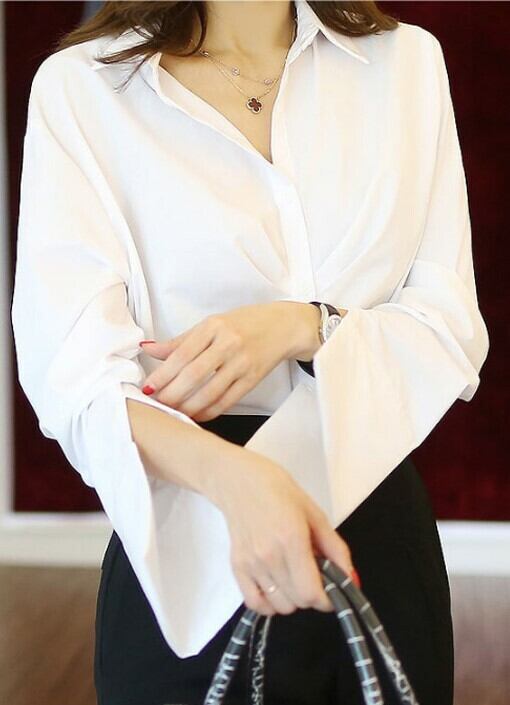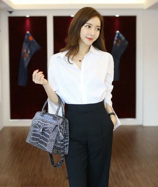 ブラウス ワイドパンツ セットアップ 開襟 長袖 カフス ストレートパンツ シンプル ハイウエスト フロントスリット ベーシック ホワイト ブラック オフィス 通勤 上品 エレガント 韓国