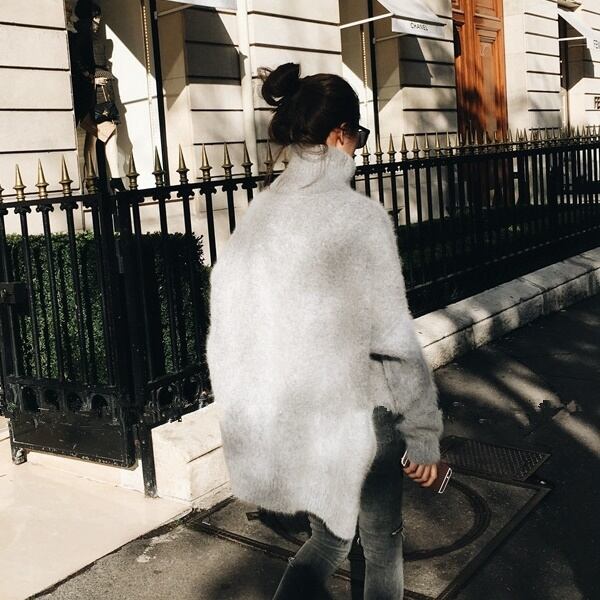 オーバーサイズのタートルネックセーターです。