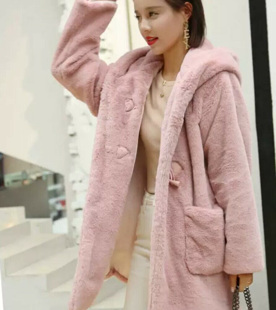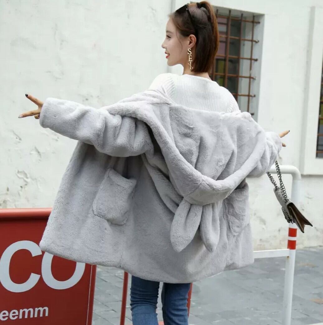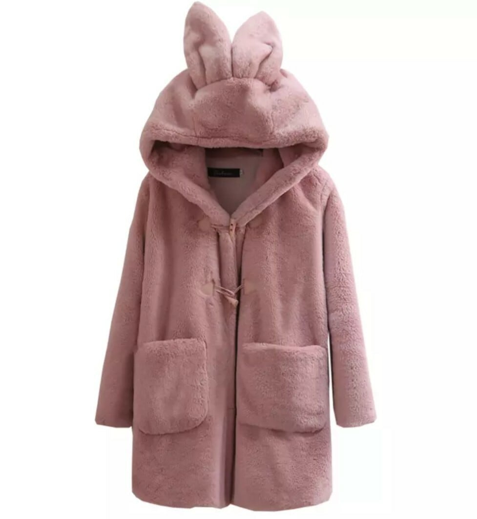 全2色 うさ耳 ファーコート フェイクファーコート 防寒 秋冬 あったかい ポケット