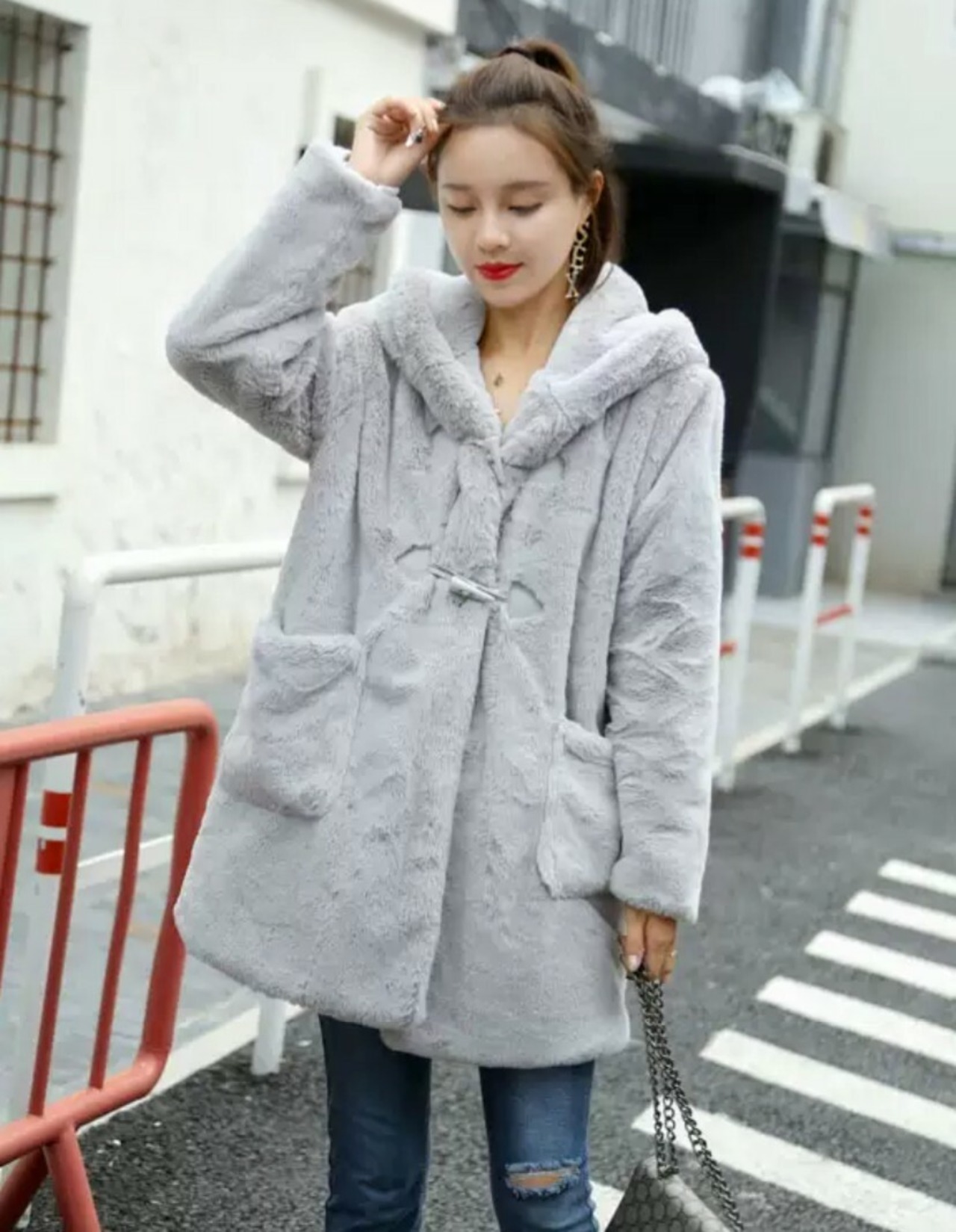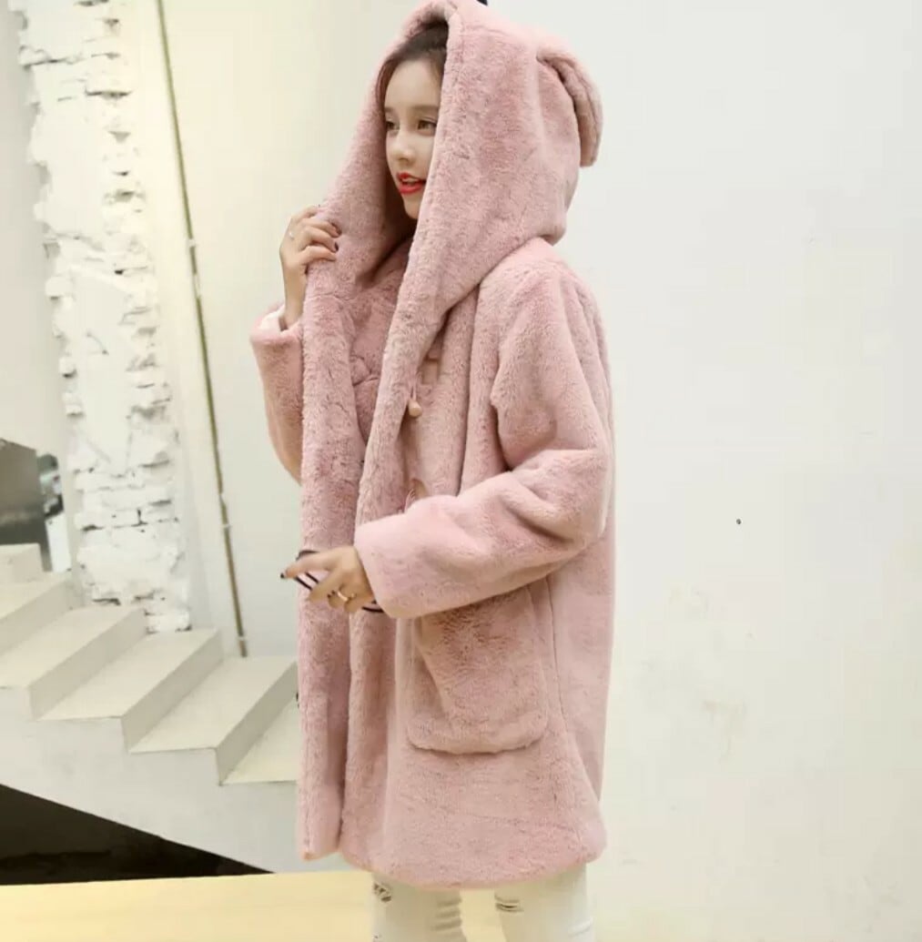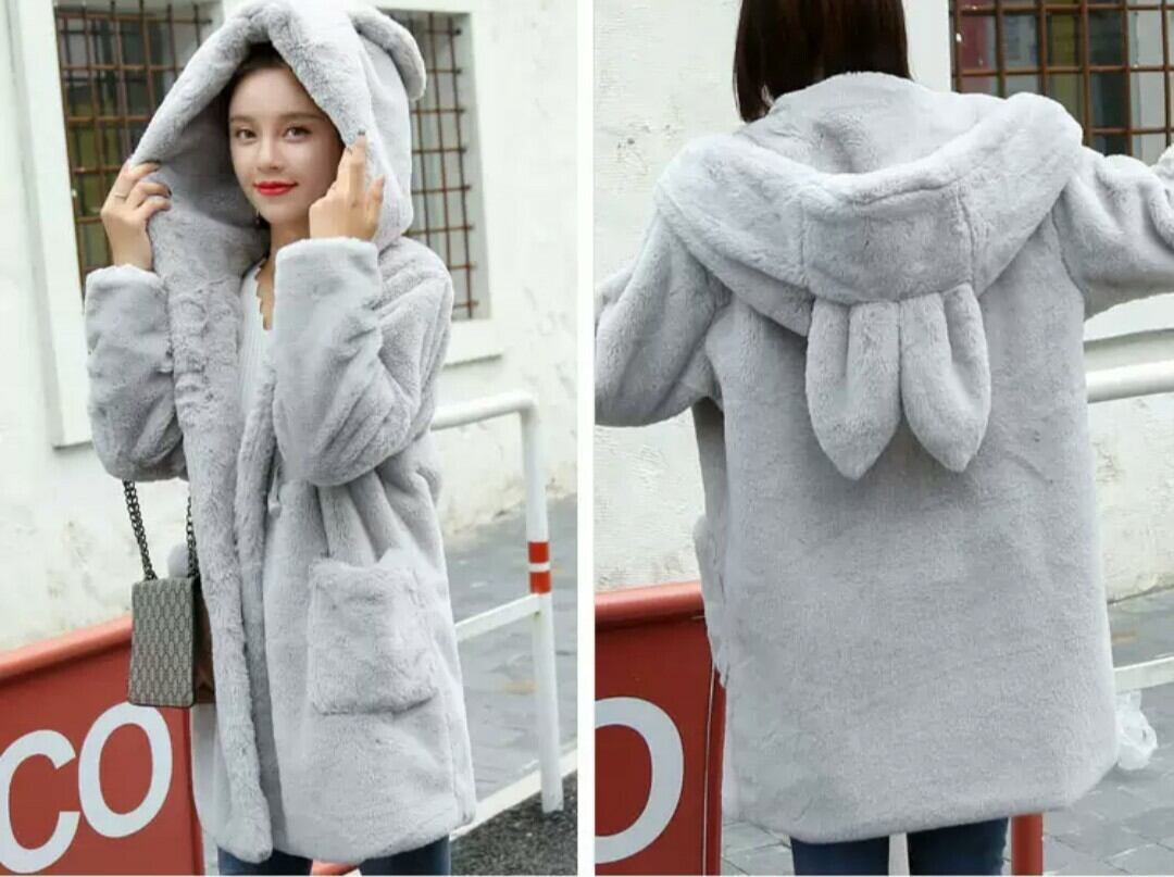ファーコートで防寒対策もでき、フードにうさ耳が付いているので可愛く着こなせます。