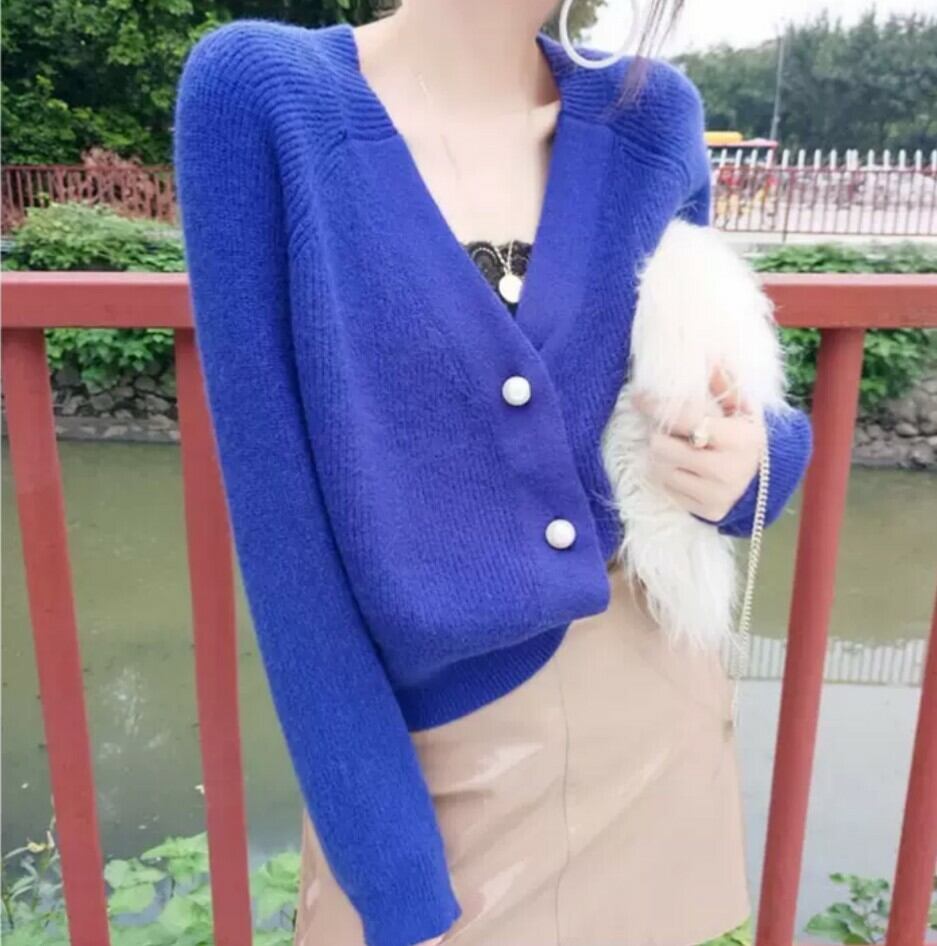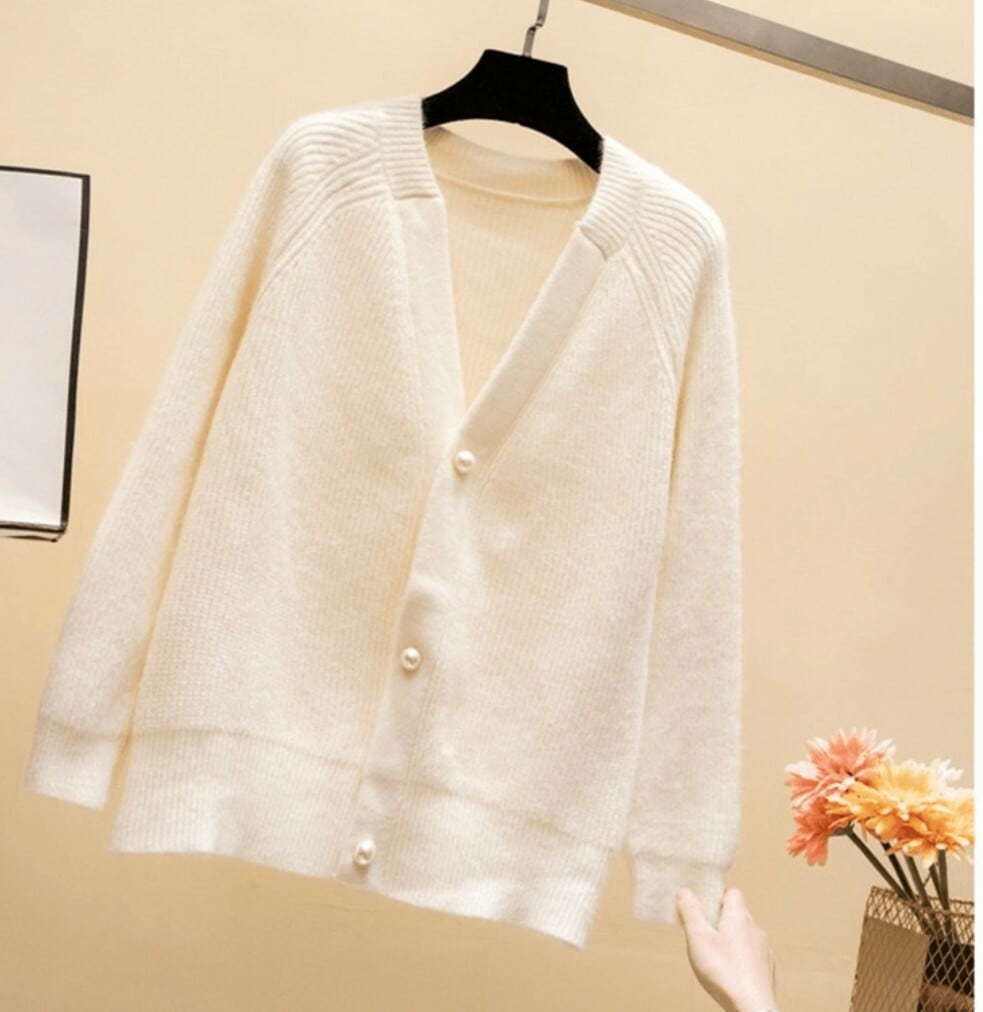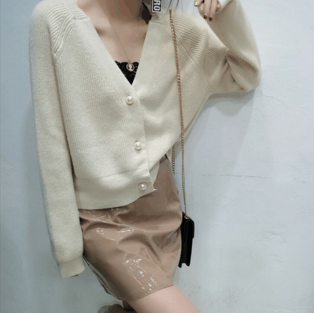 全5色 カーディガン Vネック 大きめボタン デコルテ 秋冬 防寒 すっきり カラー豊富