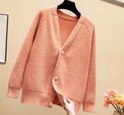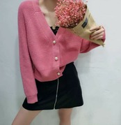 大きめボタンでワンポイント、首元をすっきりと見せてくれるVネックで大活躍の一枚です。