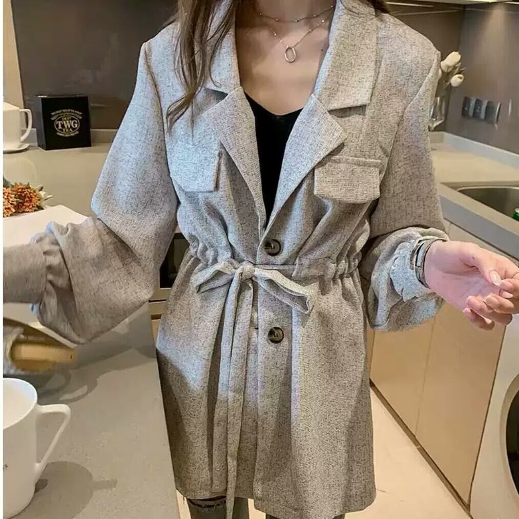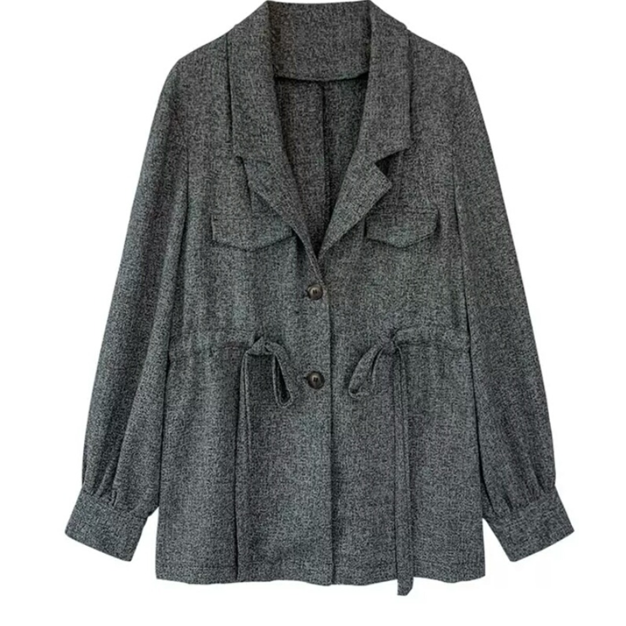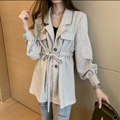 ウエストの絞りがお洒落なロングシャツです。