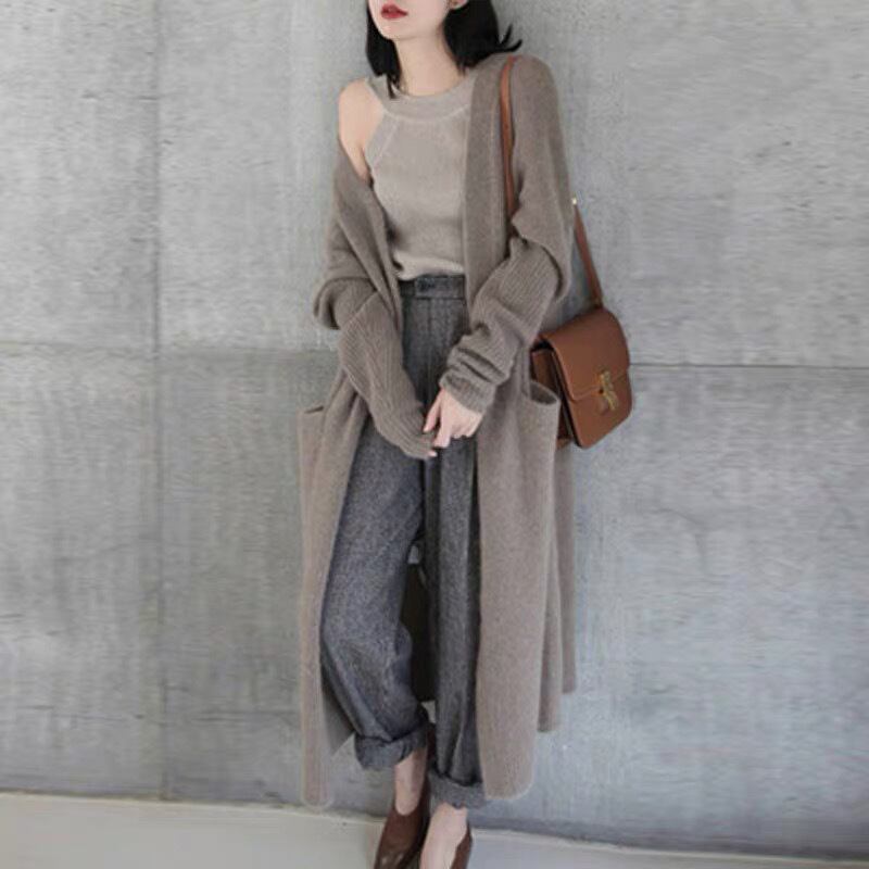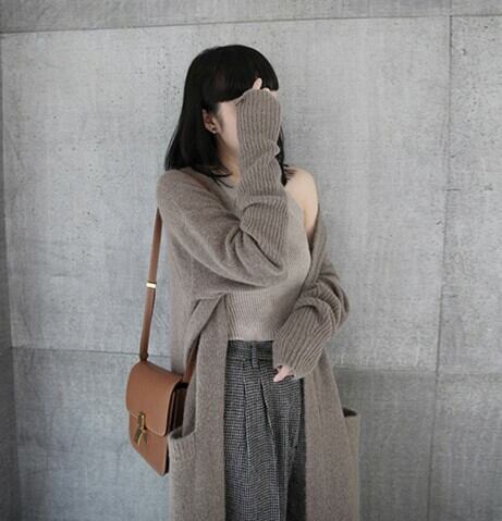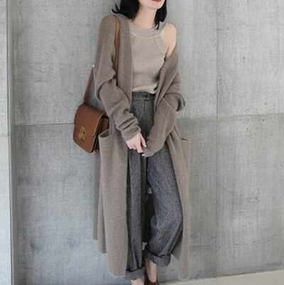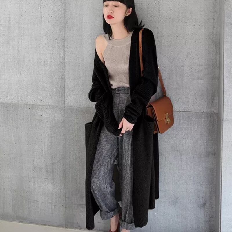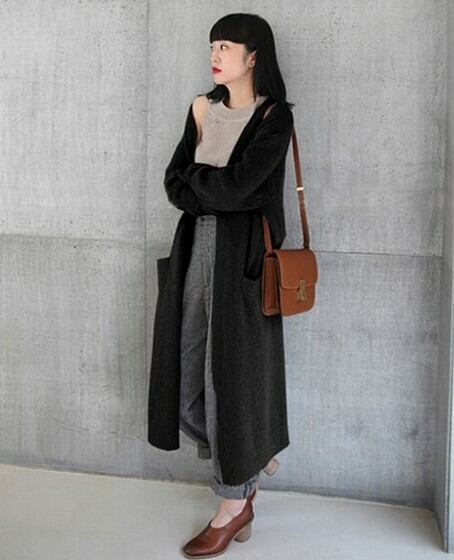 全2色 ロングカーディガン ニット ショールカーディガン 長袖 ドロップショルダー 大人キレイ 大人カジュアル 上品 エレガント 韓国 オルチャン ブラック グレー