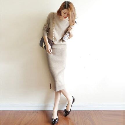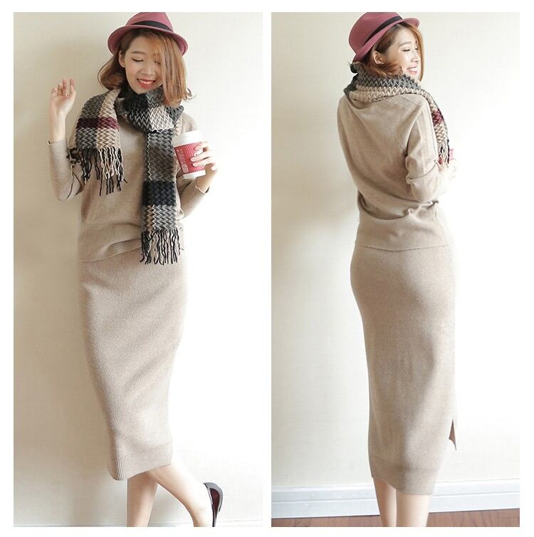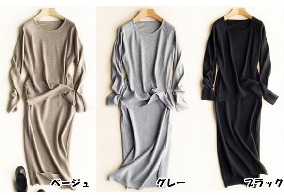 全3色 セットアップ ニット セーター スカート Iライン フェミニン ひざ丈 秋冬 通勤 お出かけ 長袖 無地