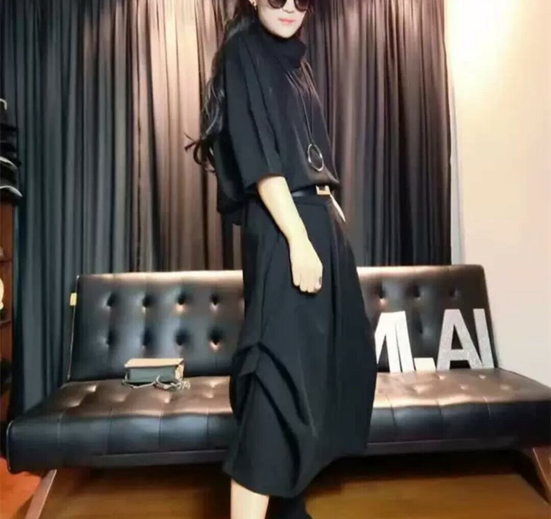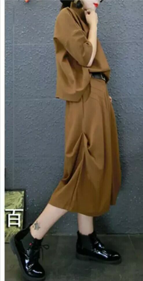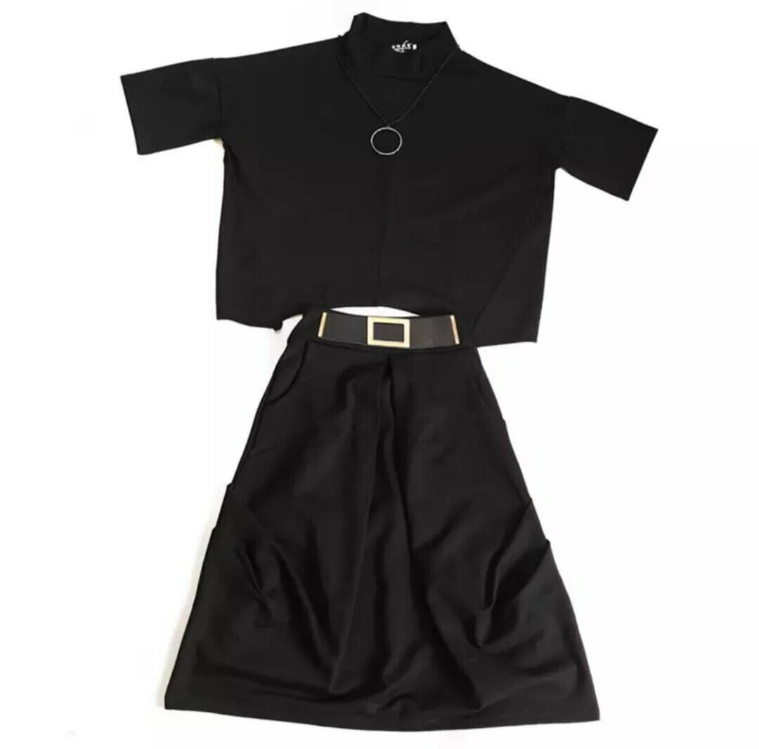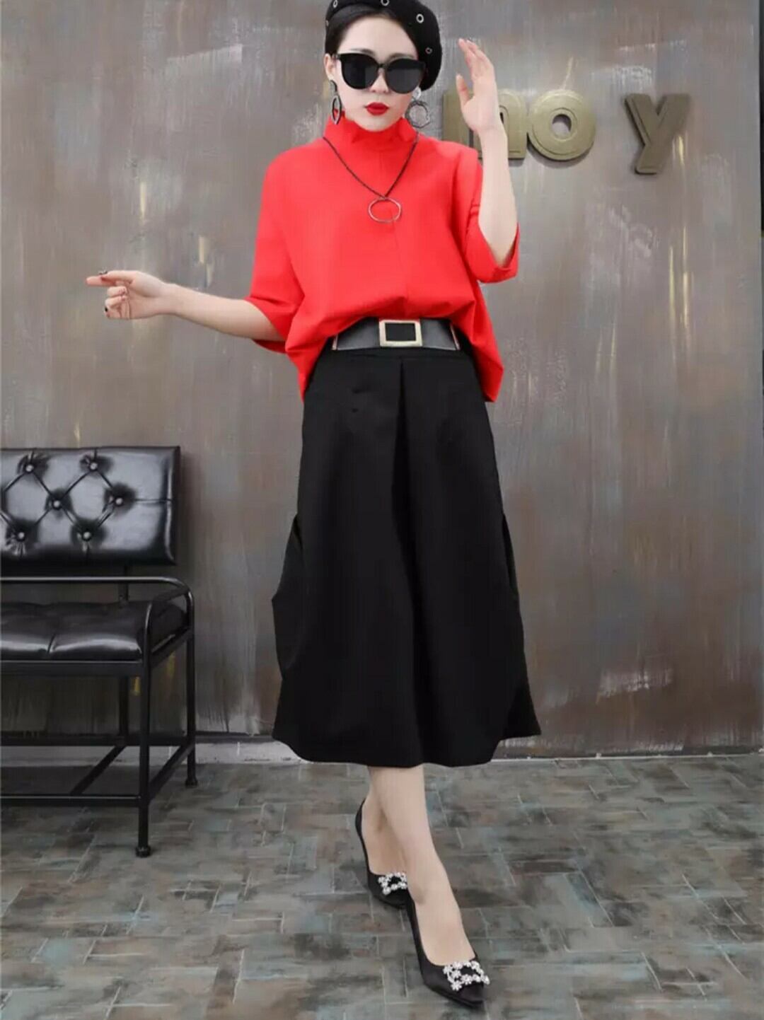全3色 セットアップ ハイネック 丸襟 トップス スカート 楽チン ゆったり 秋冬 ウエストマーク スタイルアップ