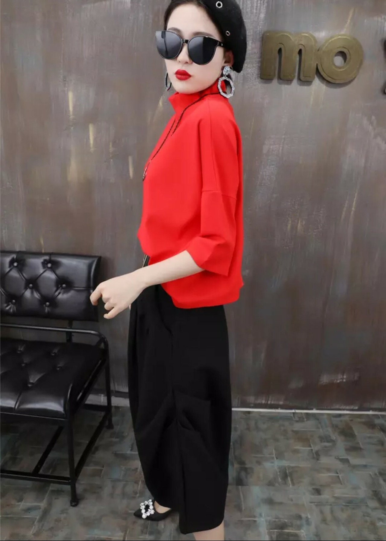 ブラック ハイネック/ブラック 丸襟/ブラウン/レッド×ブラック