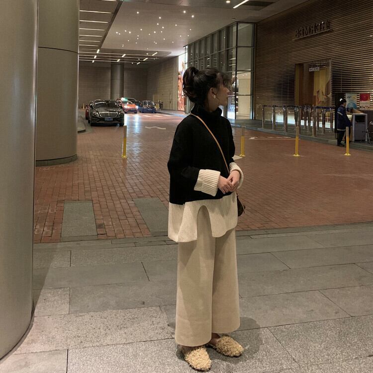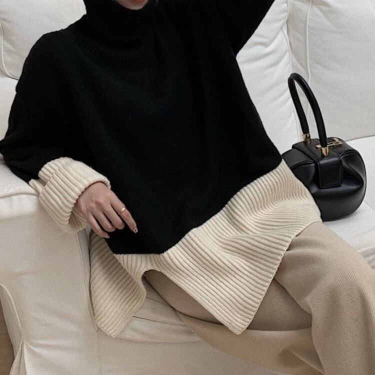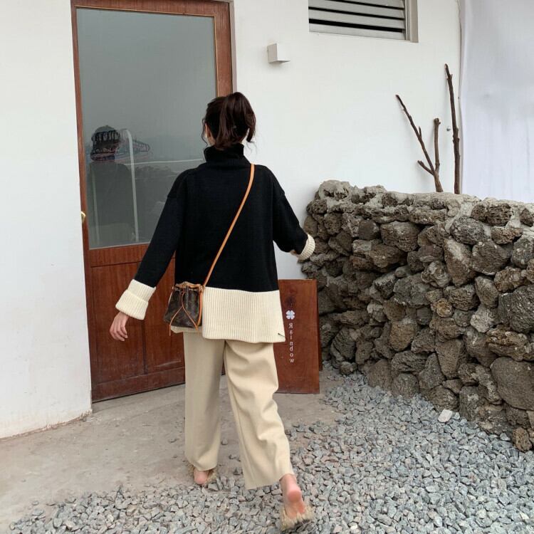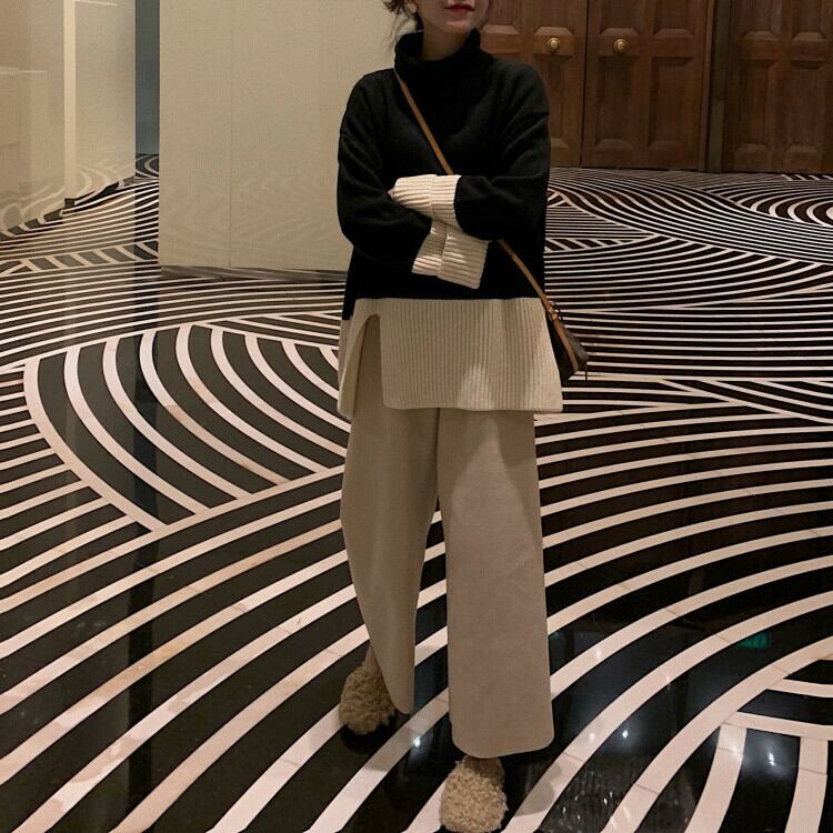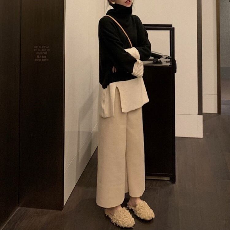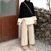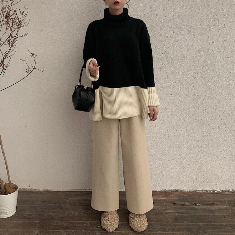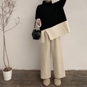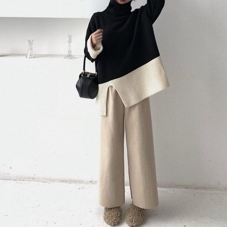 ニット セットアップ 上下セット タートルネック ワイドパンツ ゆったり 大きいサイズ 体型カバー カジュアル きれいめ デイリー お出かけ 冬