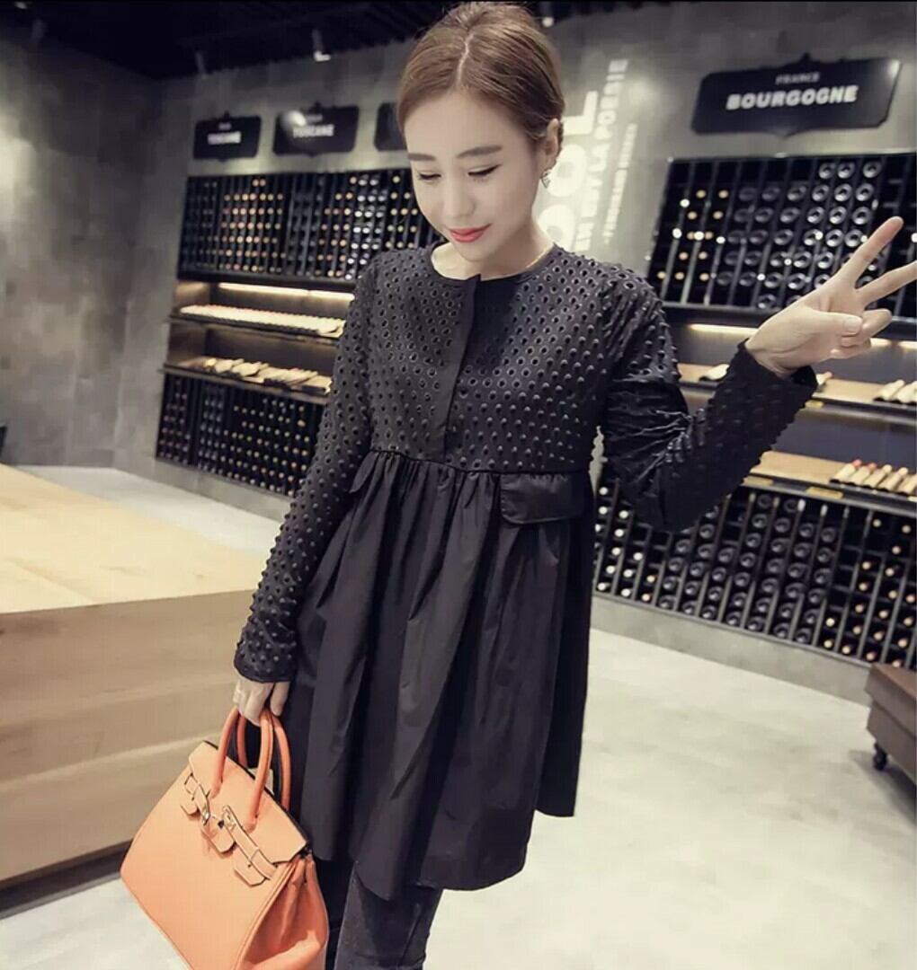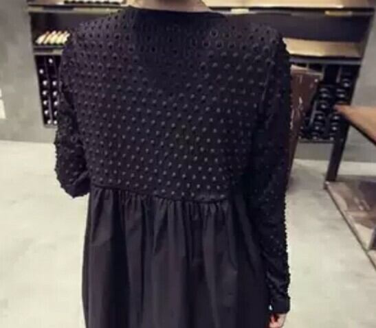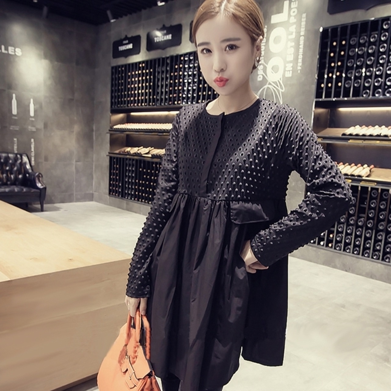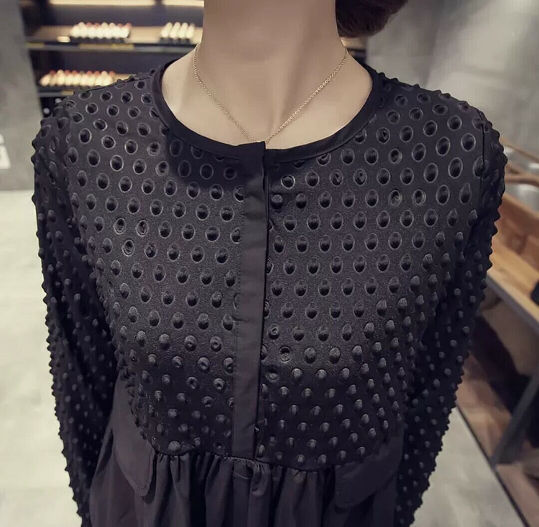トップス チュニック ラウンドネック フレア Aライン 体型カバー 長袖 大人可愛い 個性的 デザイン ドット ハイウエスト 脚長効果 ゆったり 楽チン 大きいサイズ 春 秋