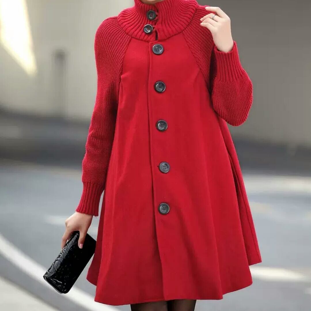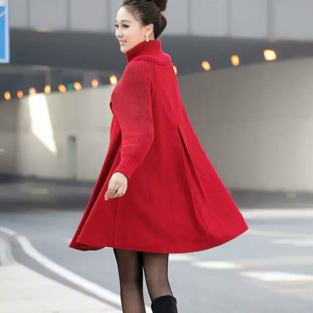全3色 ハイネック コート ニット きりかえ アウター 大きめ 大きいサイズ 無地 シンプル 大人 カジュアル キレイめ お出かけ お買い物 デート 女子会 秋冬 通学 通勤