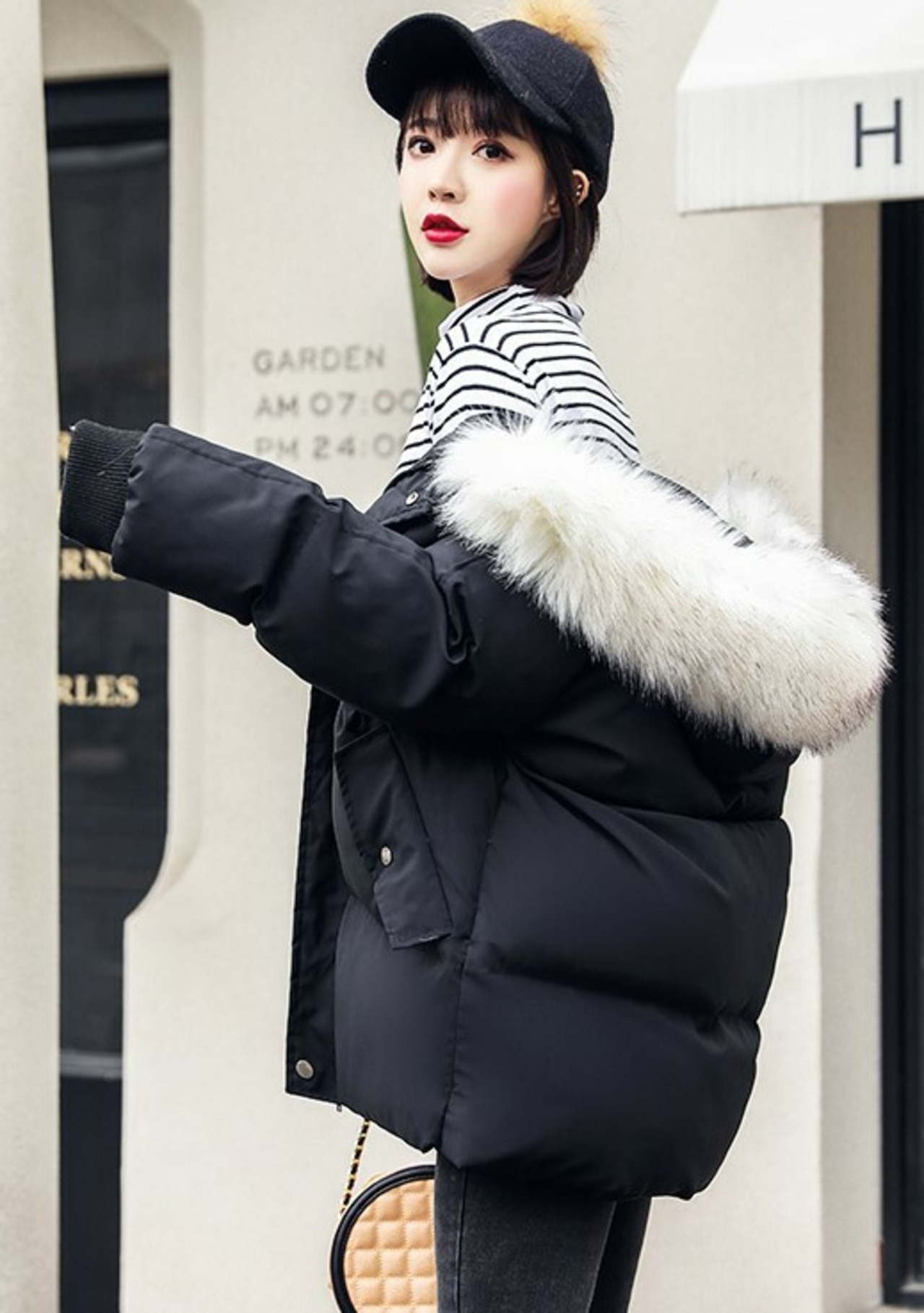 全3色 中綿コート ファー付き ホワイト ブラック イエロー 羽織り アウター 防寒 学生 通学 休日 旅行 秋 冬 韓国 オルチャン カジュアル スポーティ