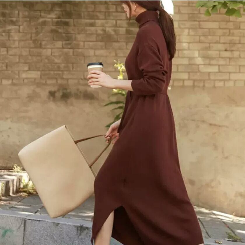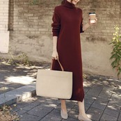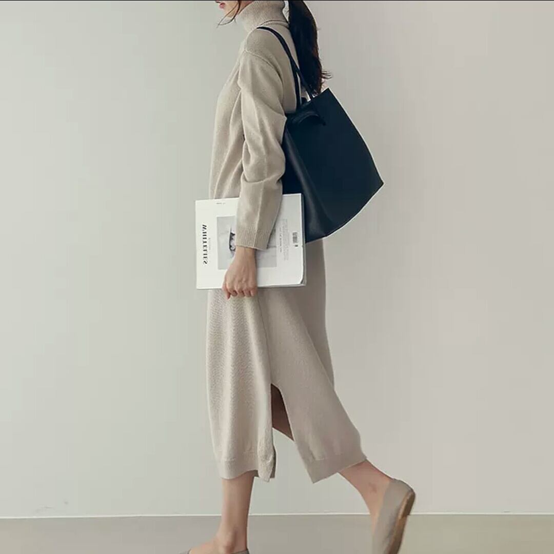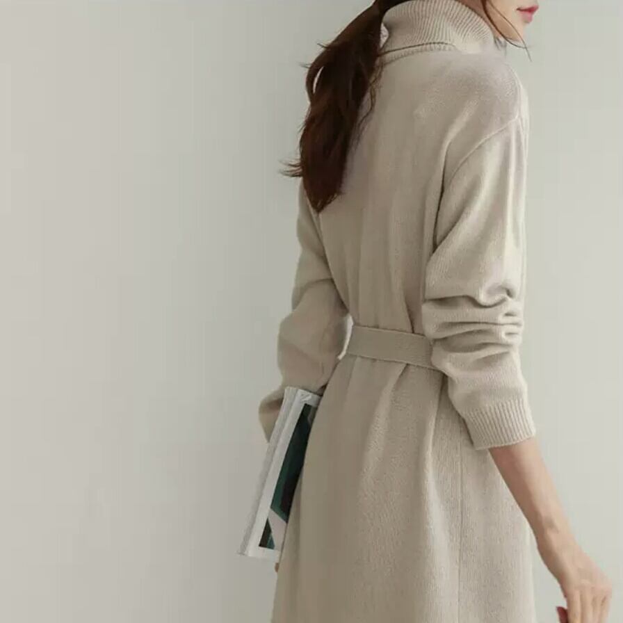 全2色2種 ロング丈 ニット ワンピース 無地 ハイネック タートルネック ベルト 大人 カジュアル キレイめ シンプル 秋冬 春 お出かけ お買い物 デート 女子会 通勤 通学