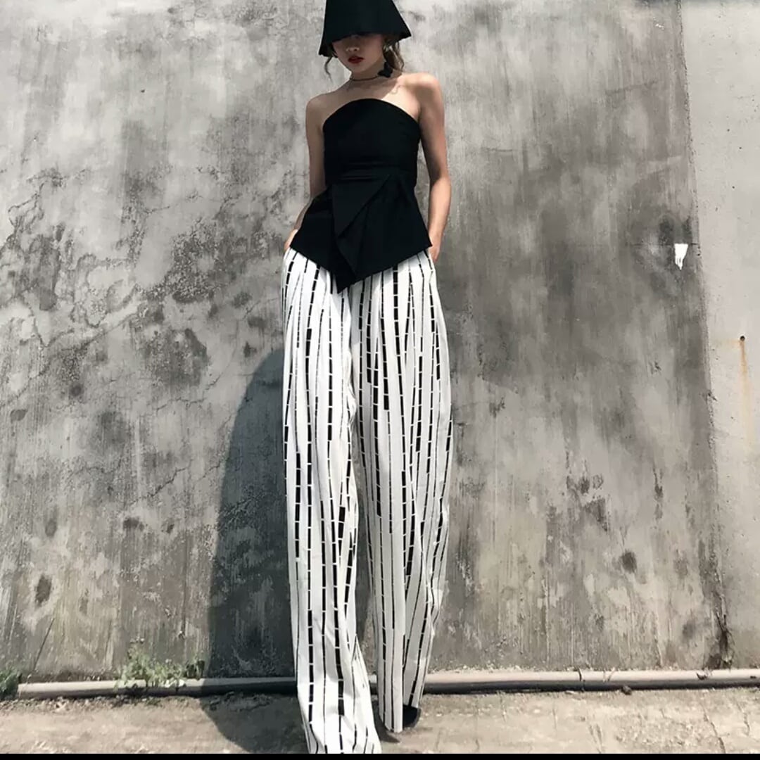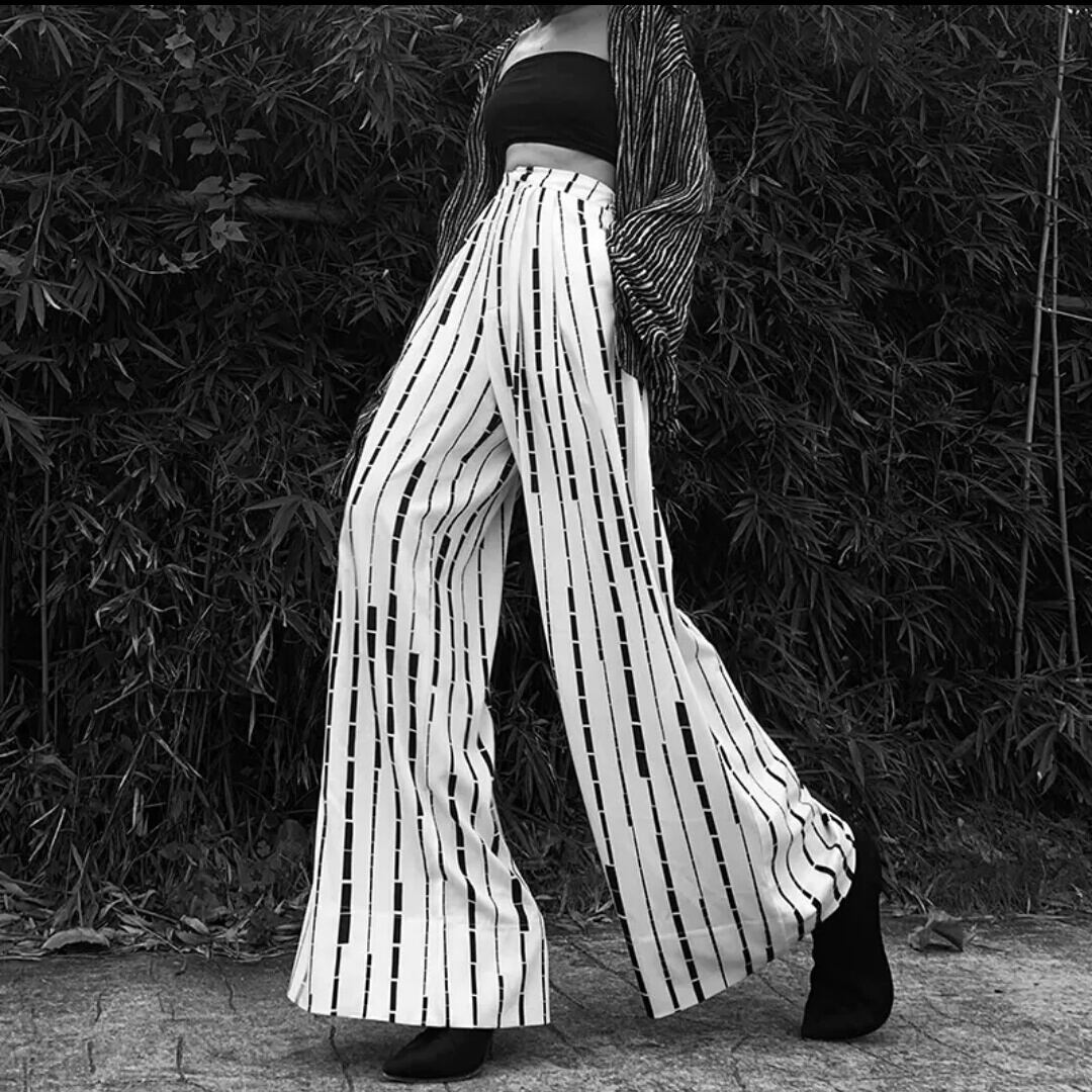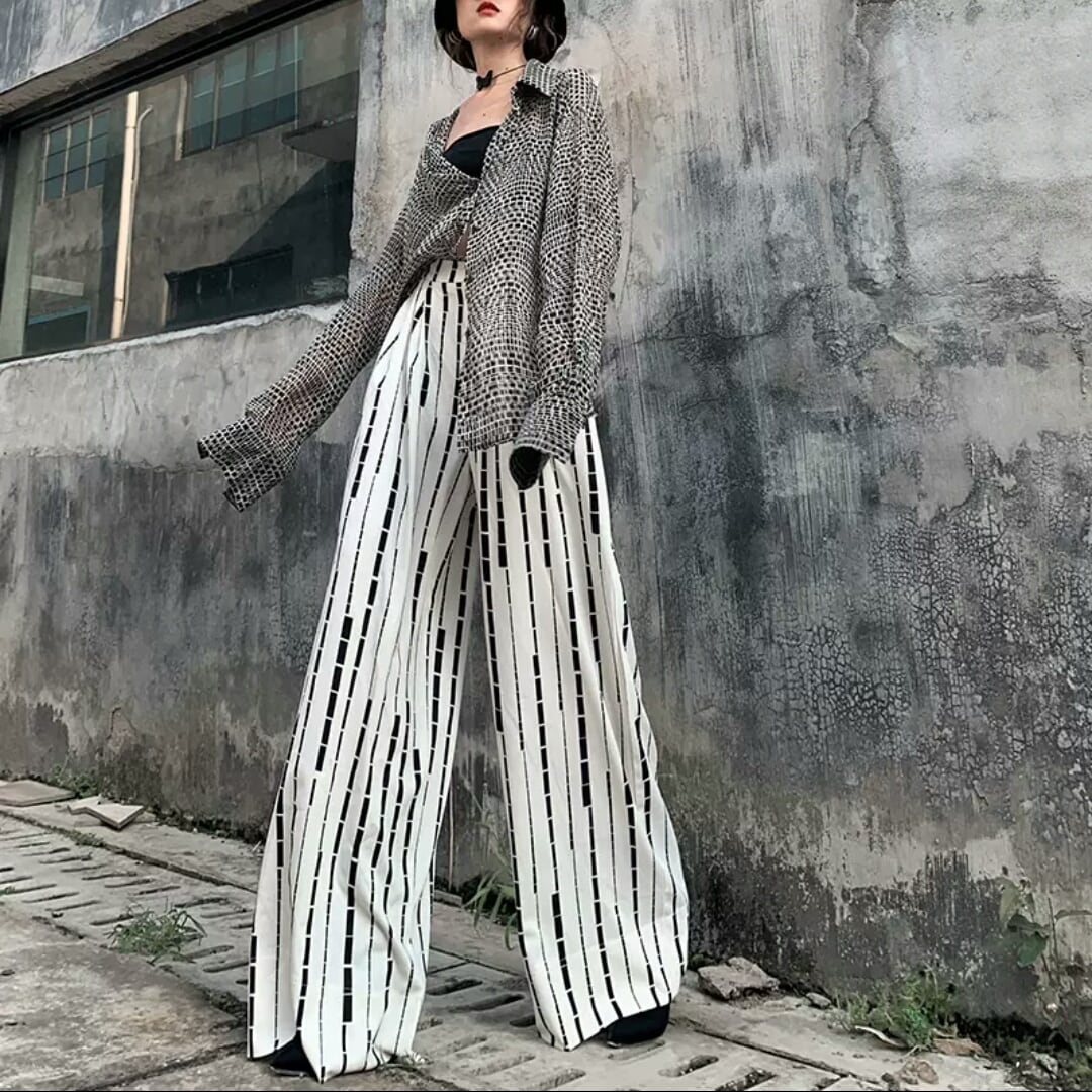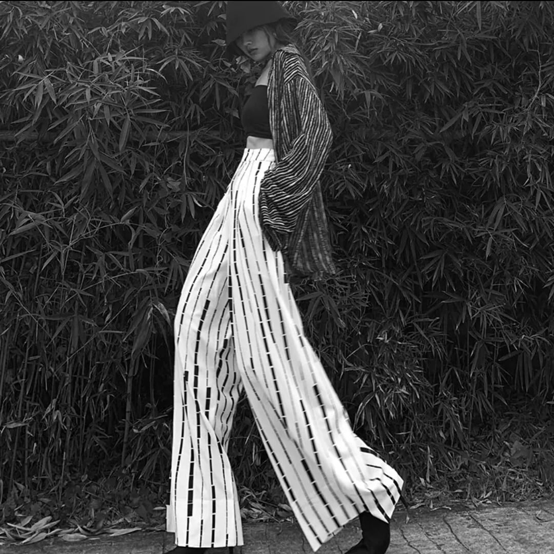 ワイドパンツ ストライプ 個性的 モード系 ストリート系 お出かけ お買い物 デート 女子会 秋冬 春 通学 学生 大人 カジュアル
