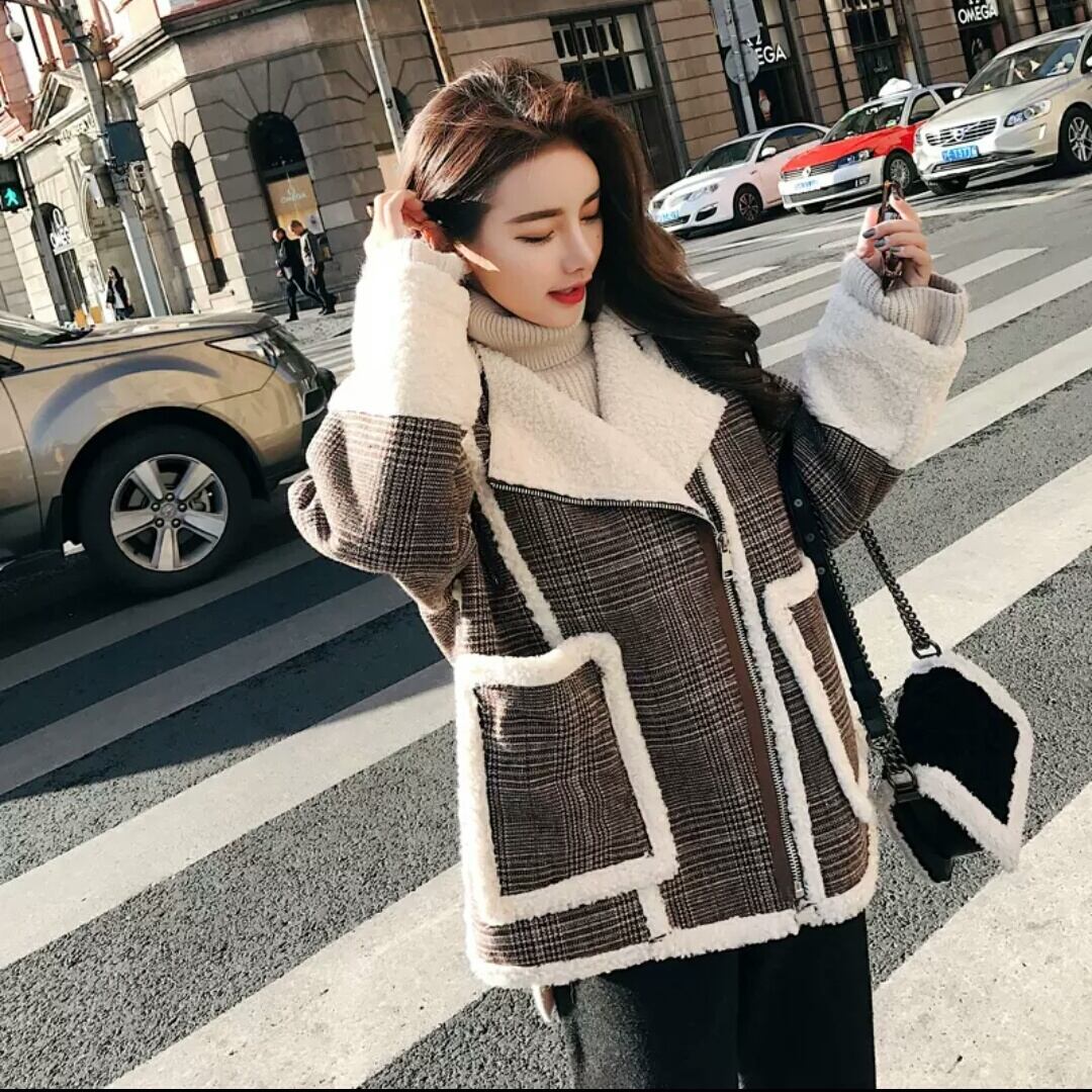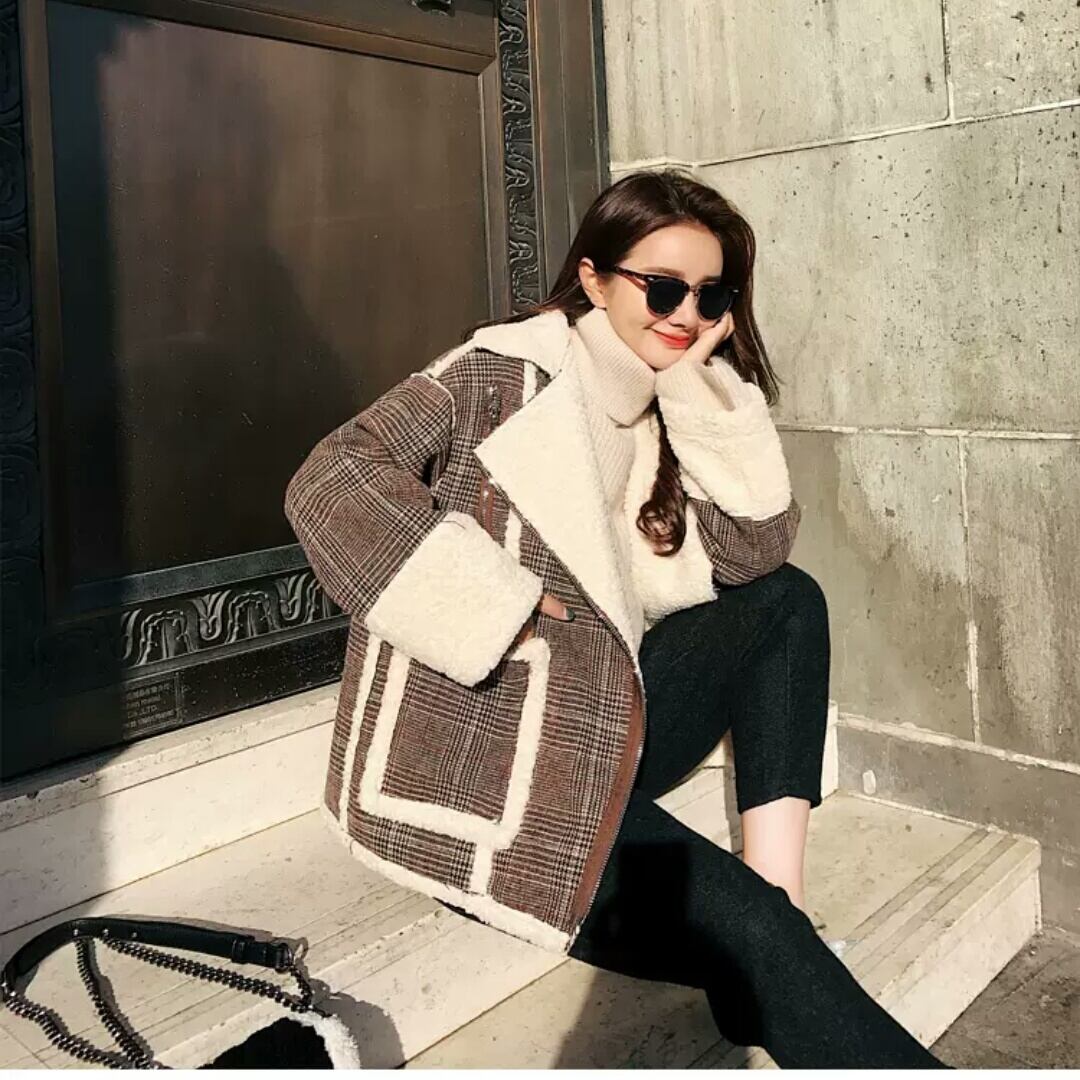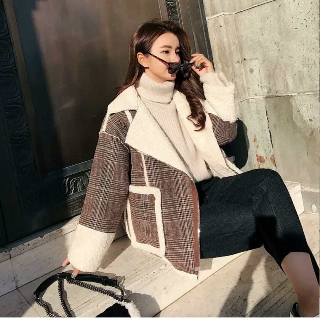 ボアジャケット アウター チェック柄 防寒 暖かい 羽織り お出かけ お買い物 デート 女子会 秋冬 通学 学生