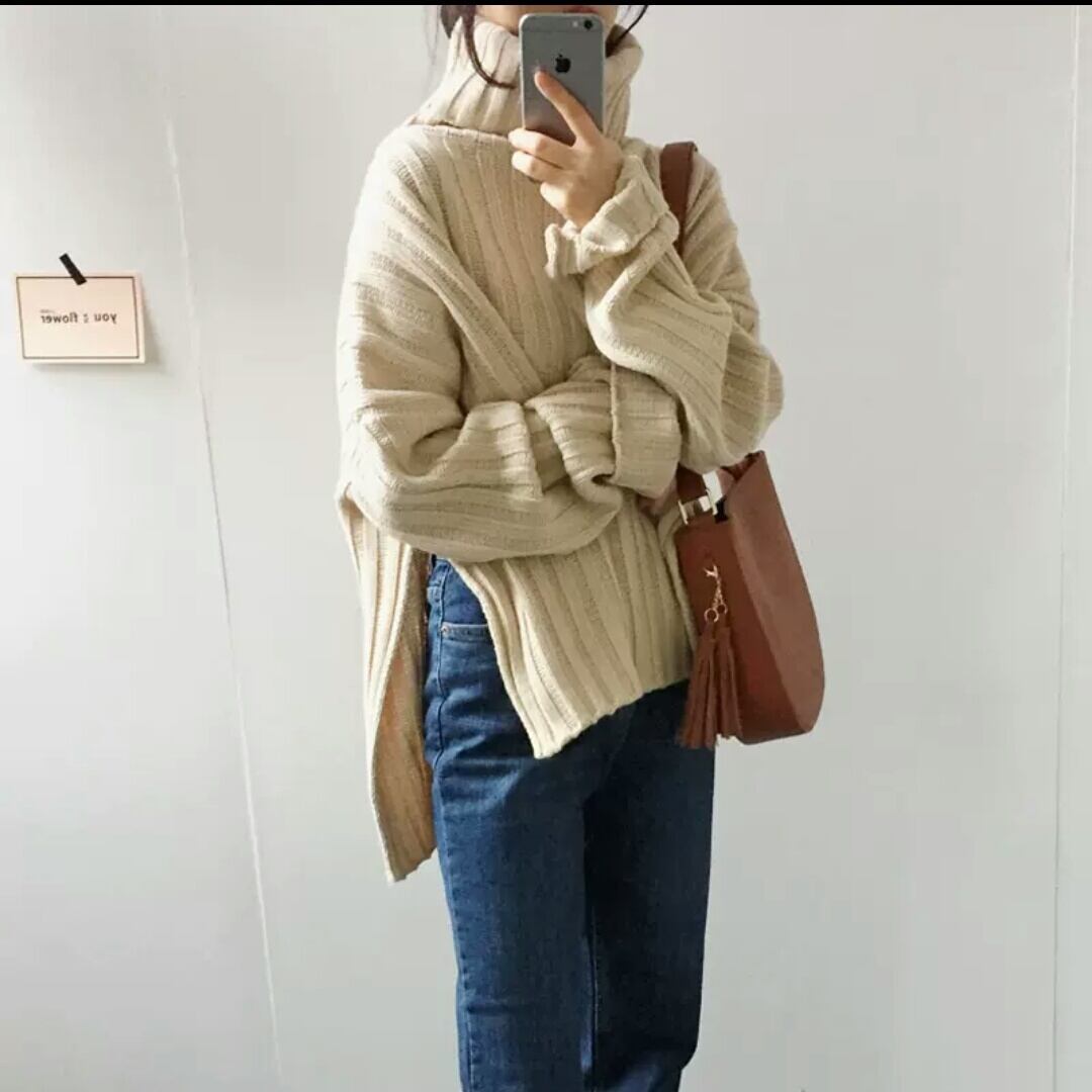 タートルネックが暖かいニットトップス♪
